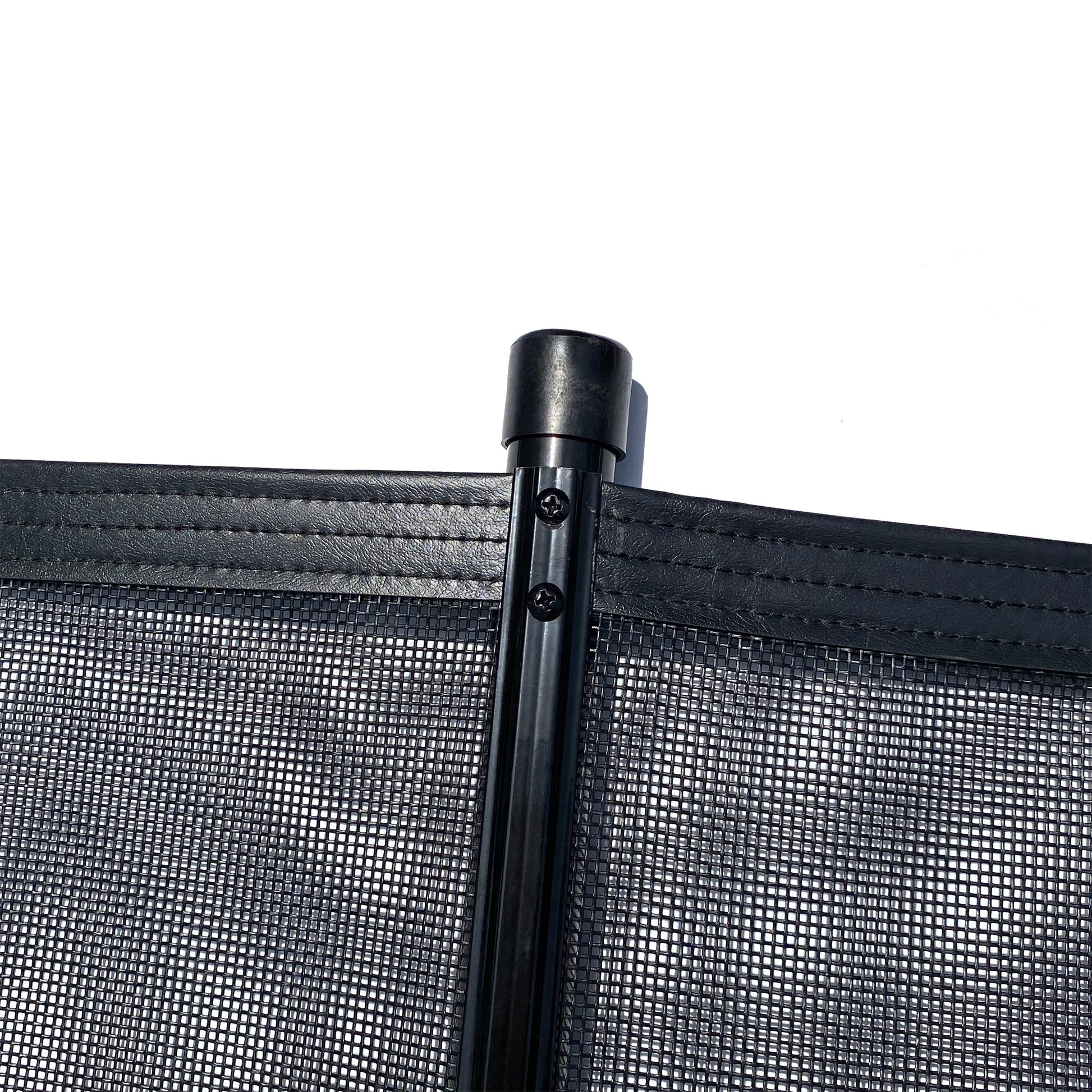 Excellent construction:The in-ground fence is composed of rugged powder-coated aluminum tubes, durability and stability 350 GSM Textilene mesh fabric , stainless steel foot tubes and plastic foot covers, that will not crack easily, aging- and wear resistance.