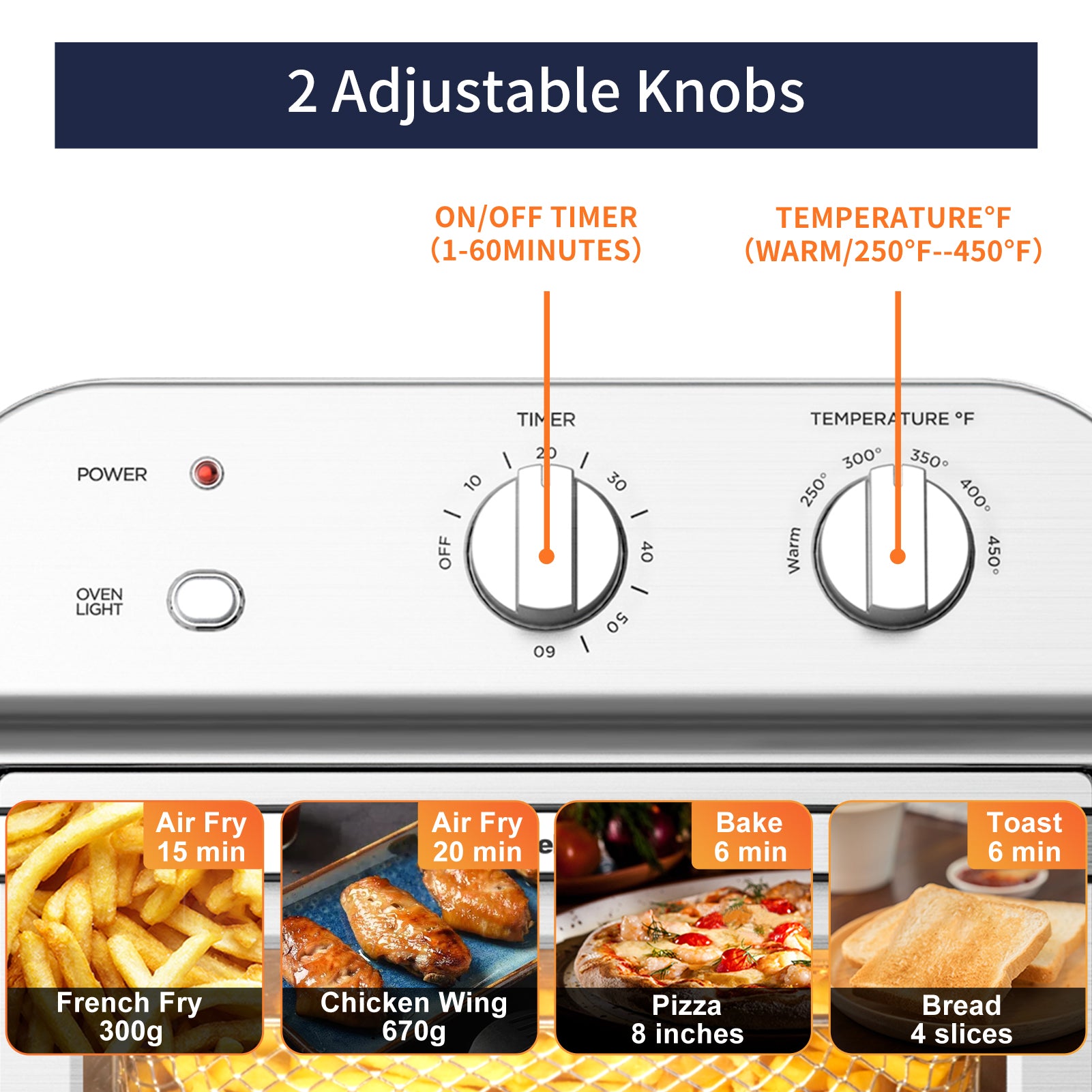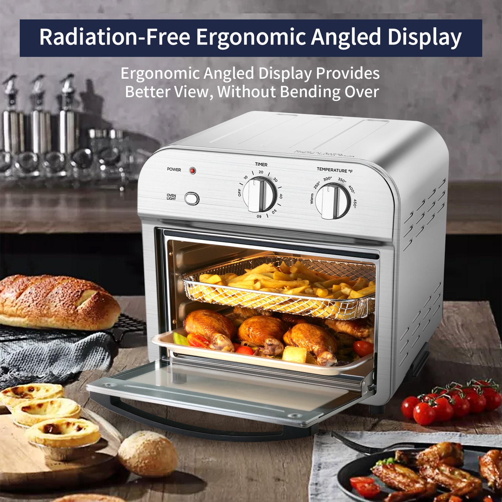 - 【Healthy, Powerful, Easy and Duarable】 ETL listed for safety, 1500W strong Power makes super Efficient to cook food in the Healthiest way by cutting over 85% of fats. Pull-Down Door with a Large Window makes it easy to monitor progress as food cook. Brushed Stainless Steel exterior enhances any kitchen décor; nonstick interior and stainless steel exterior wipe clean in seconds