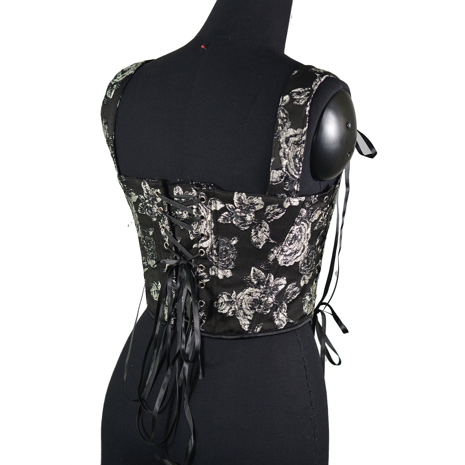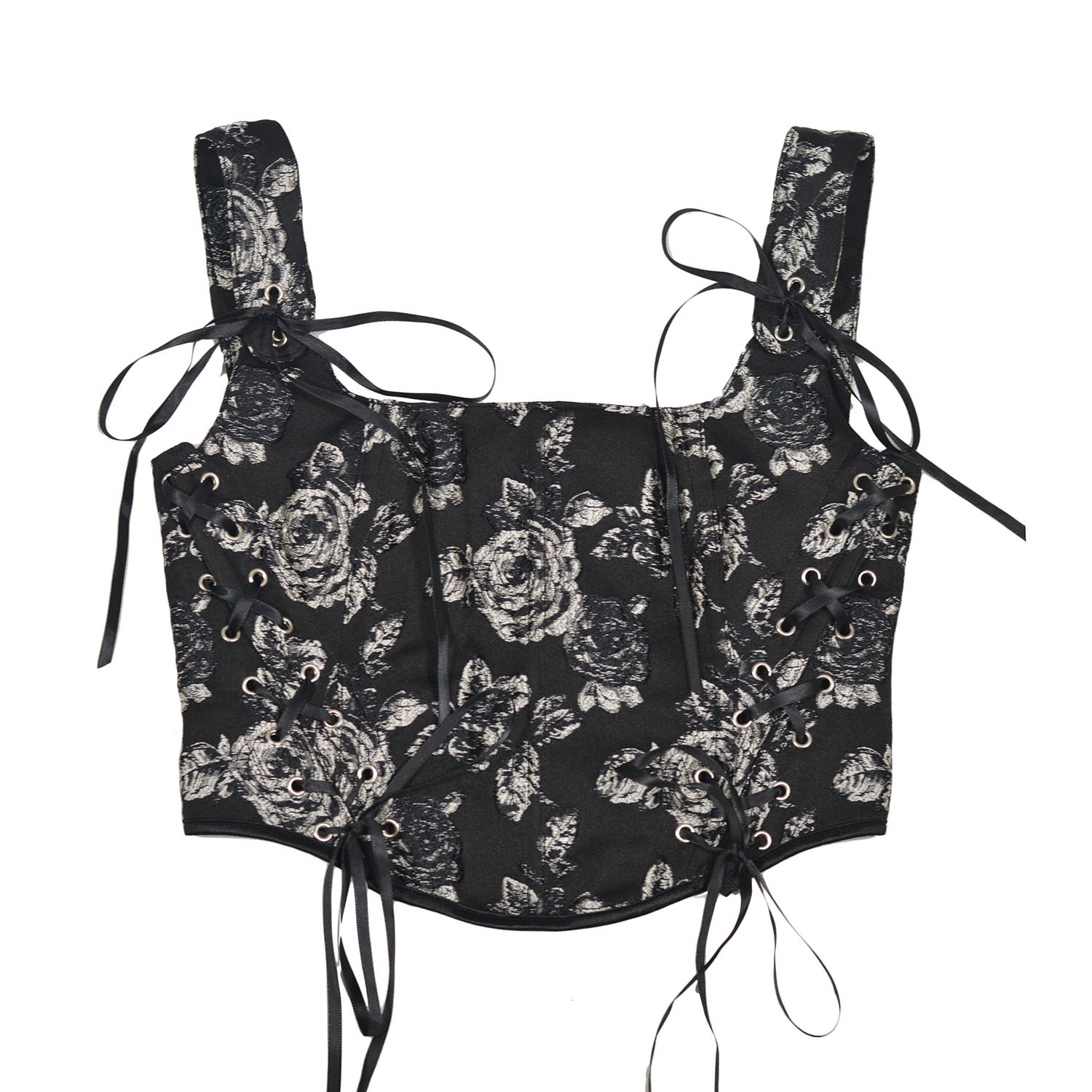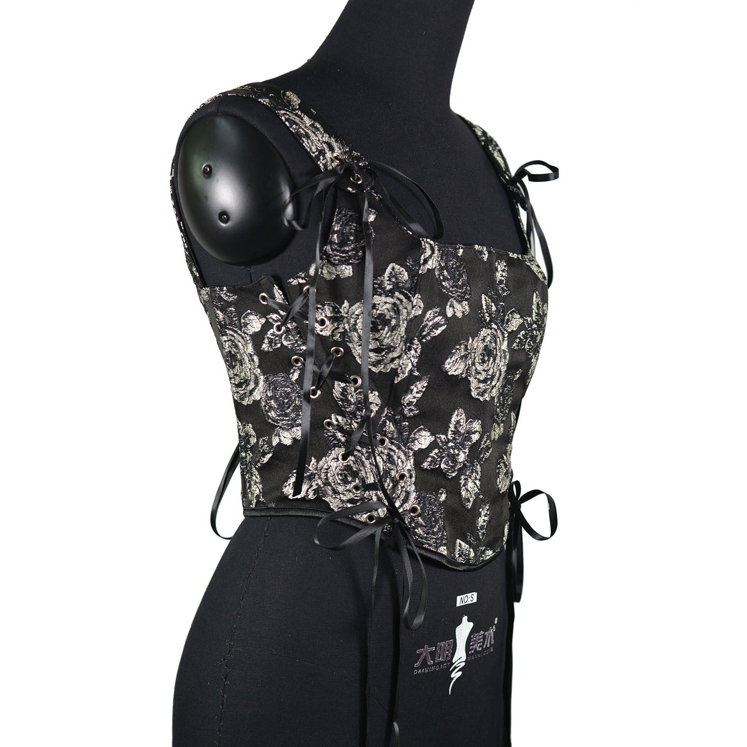 Black Rose Double Layer Fishbone Corset Waistband Retro Corset Outerwear