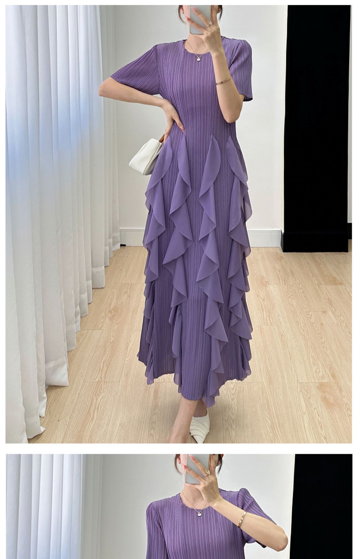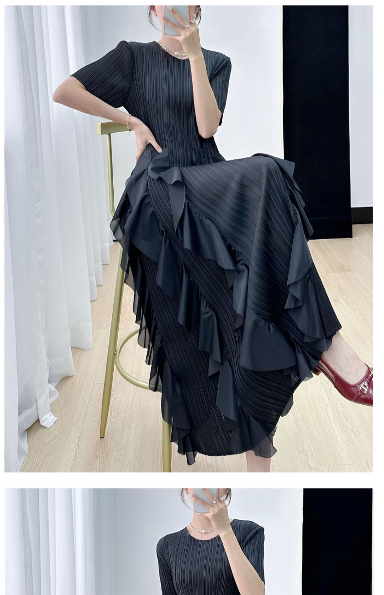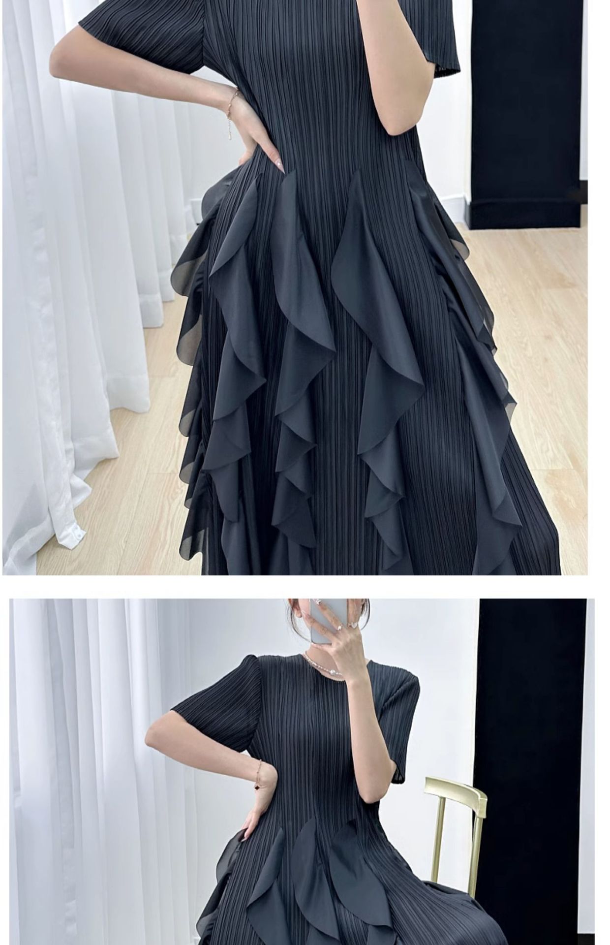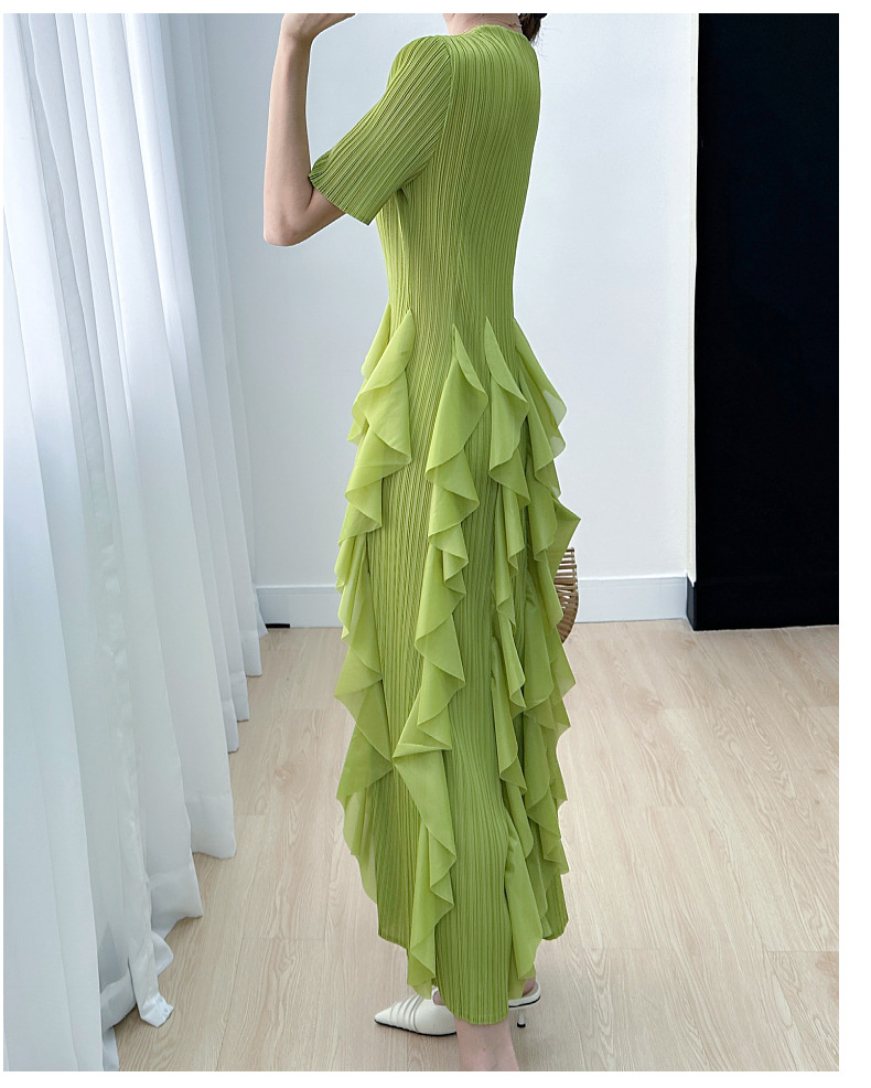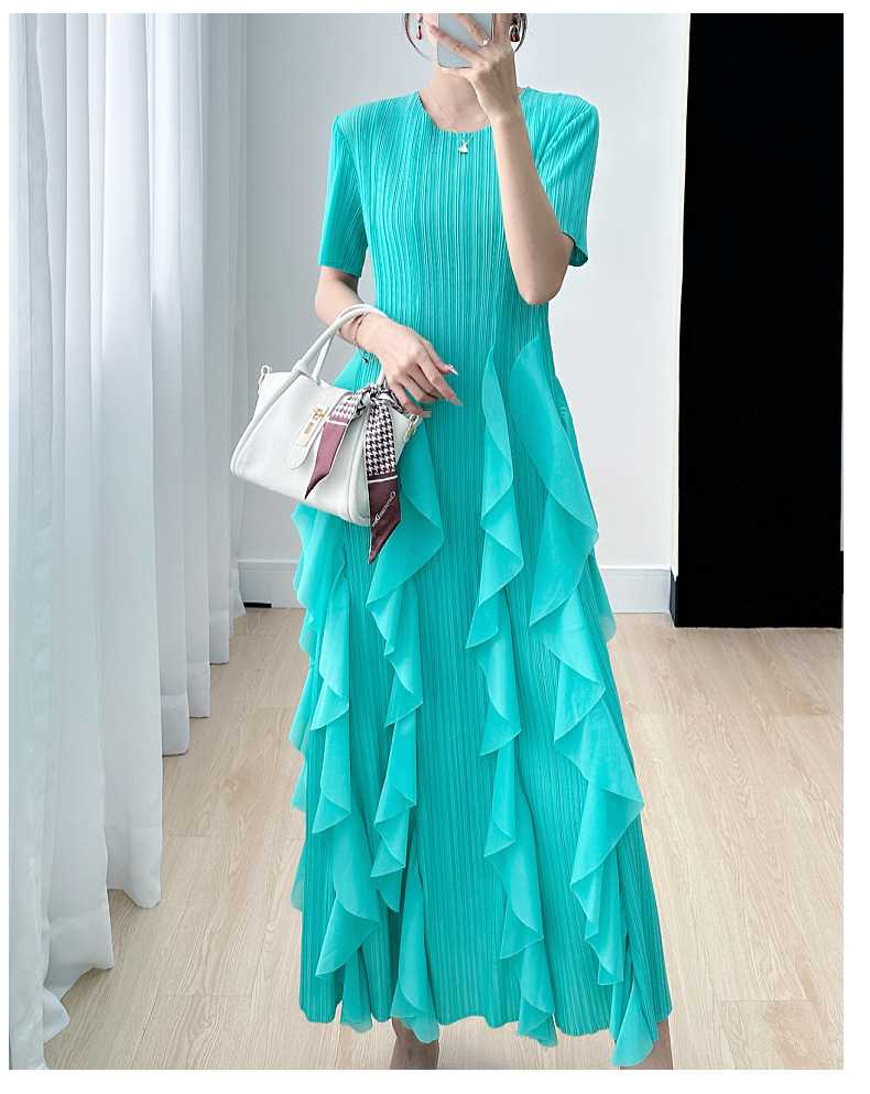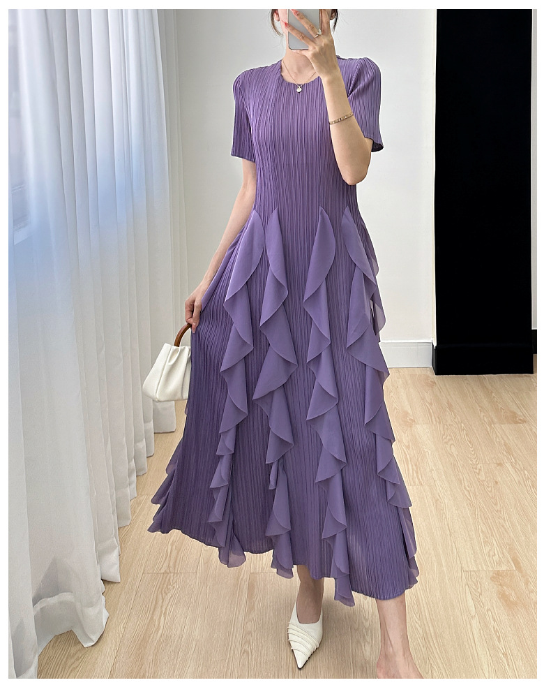 Elegant Dress for Women New Indie Design High-End Temperament Round Neck Short Sleeve Pleated Dresses Women