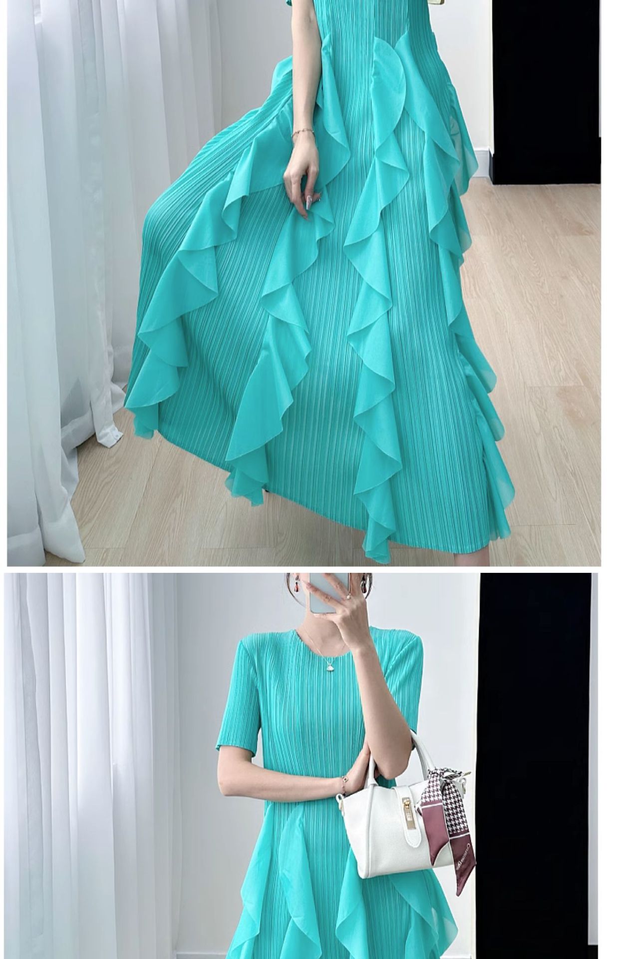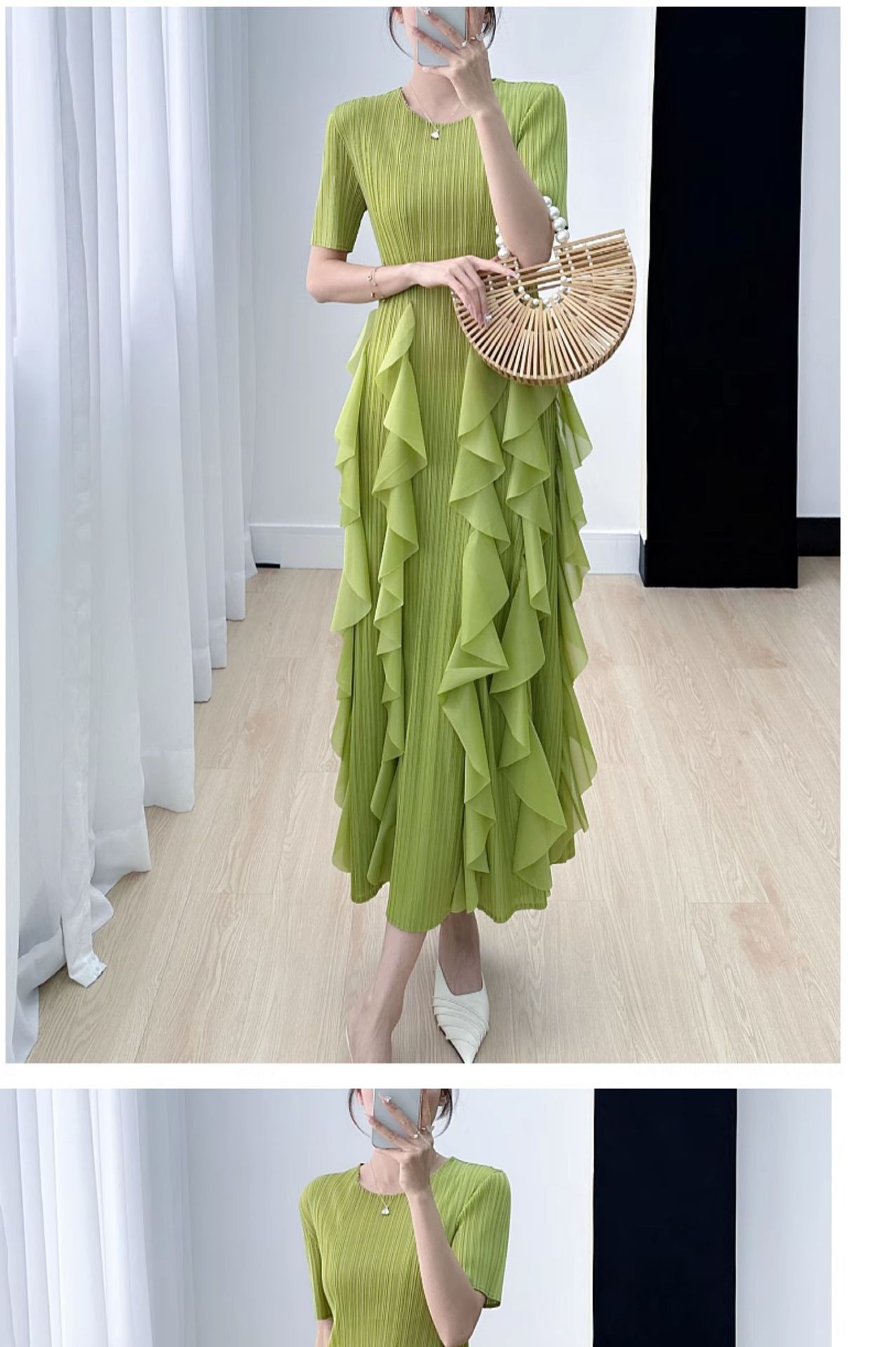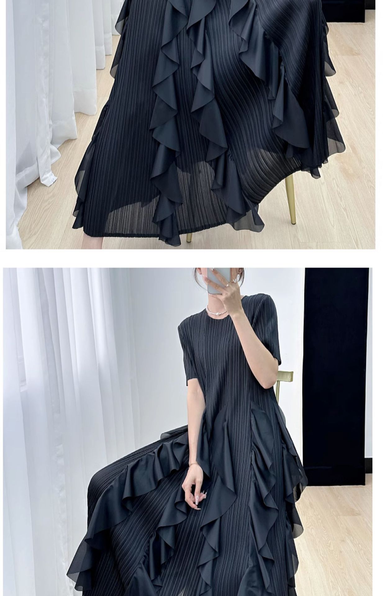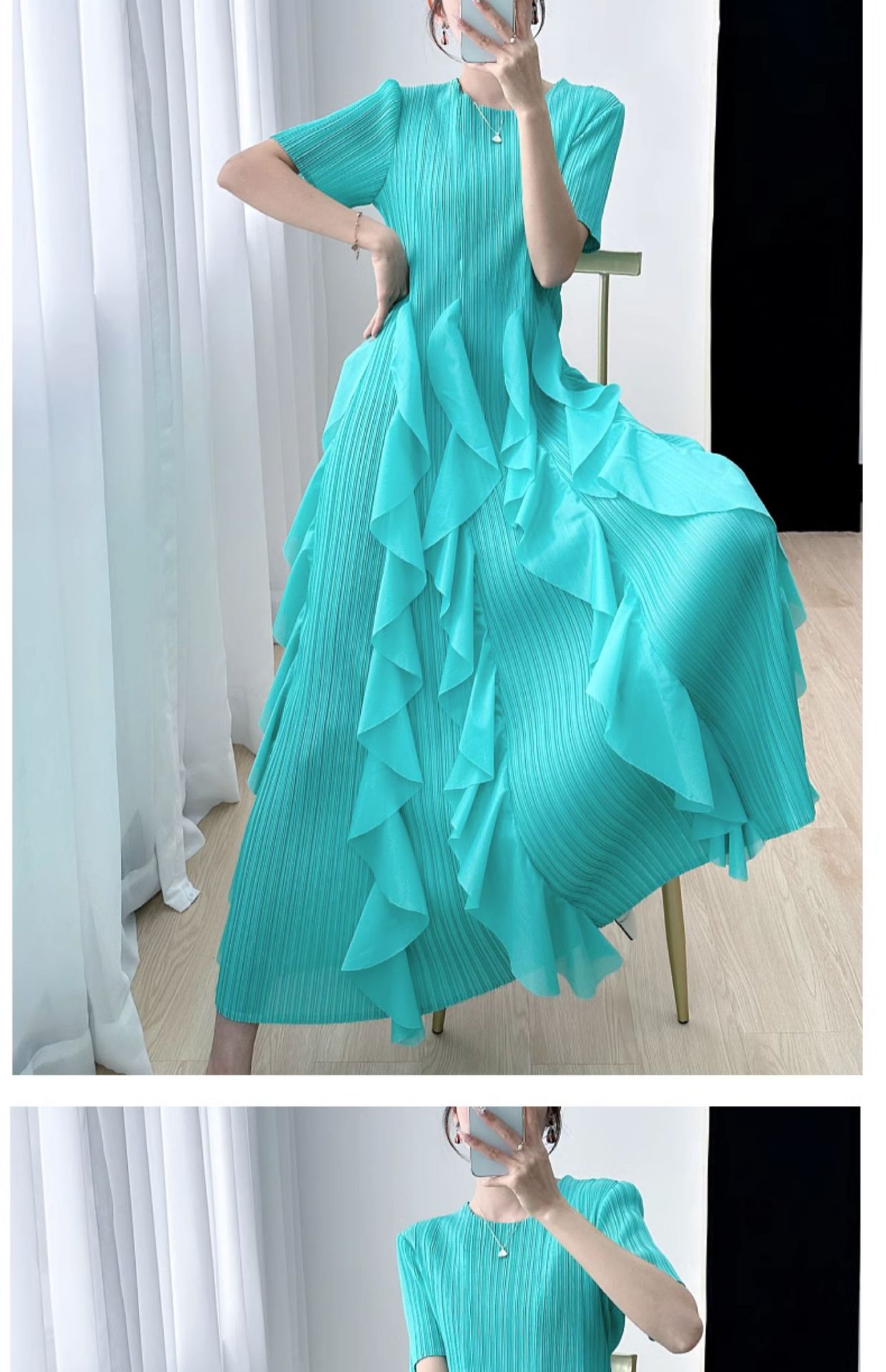 Elegant Dress for Women New Indie Design High-End Temperament Round Neck Short Sleeve Pleated Dresses Women