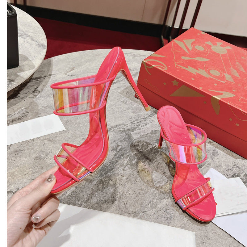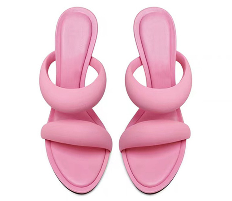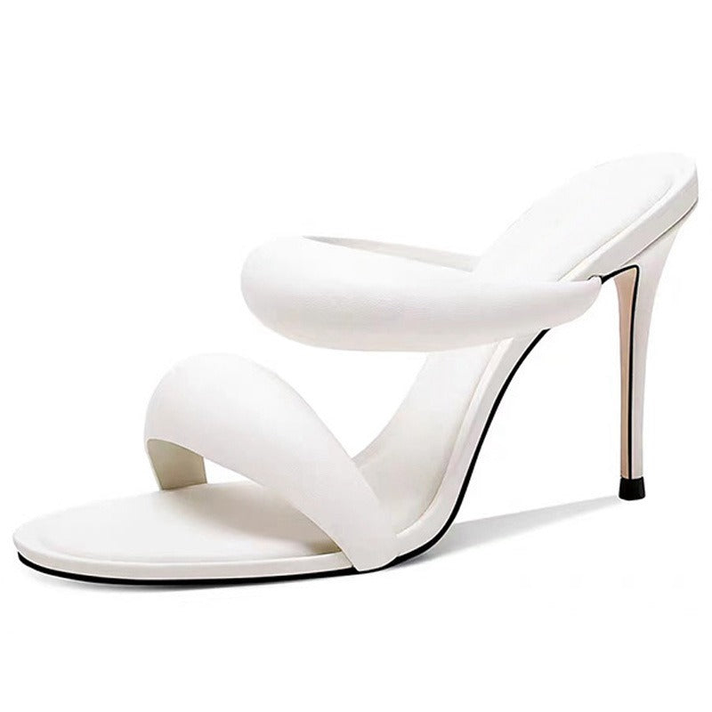 Filled-Band One-Strap Slippers for Women Simple High Heel Open Toe Slip on Sandals