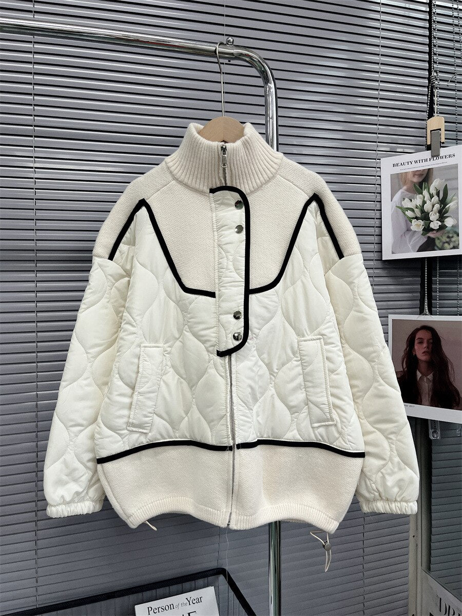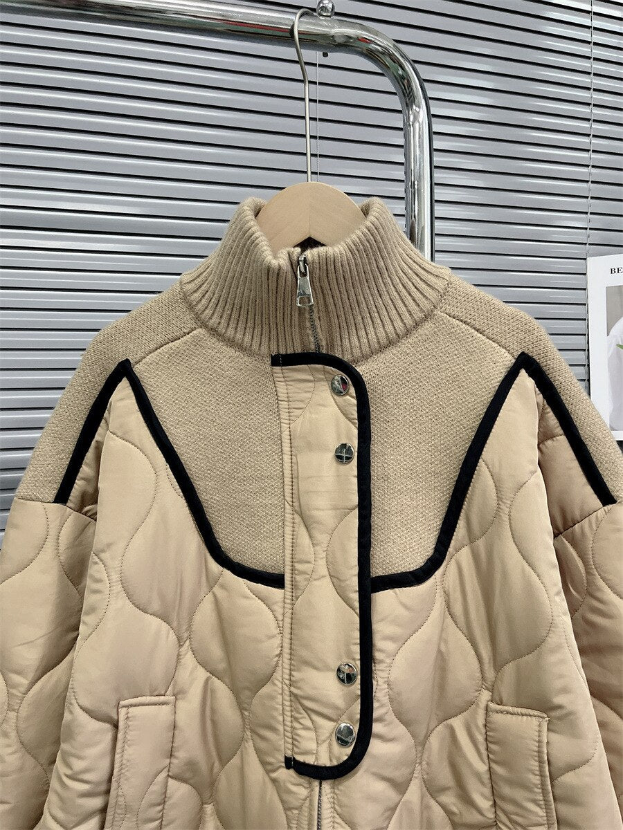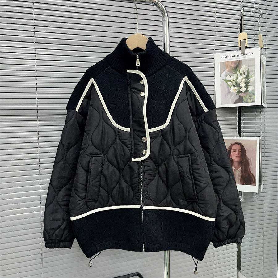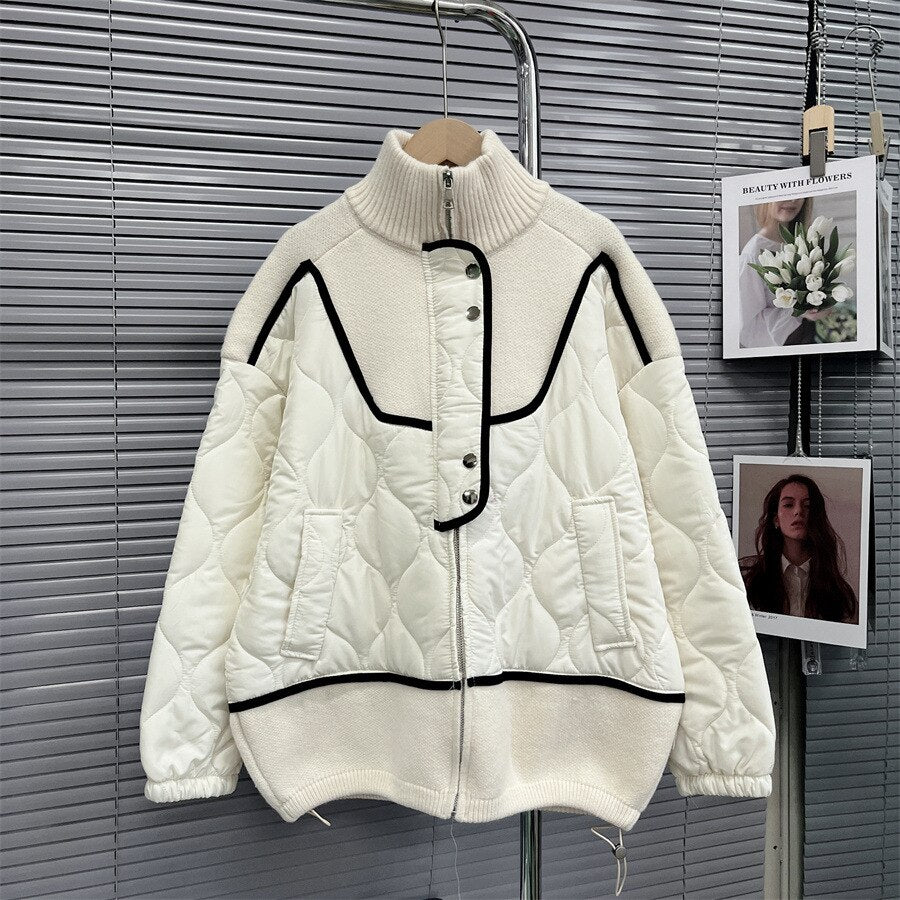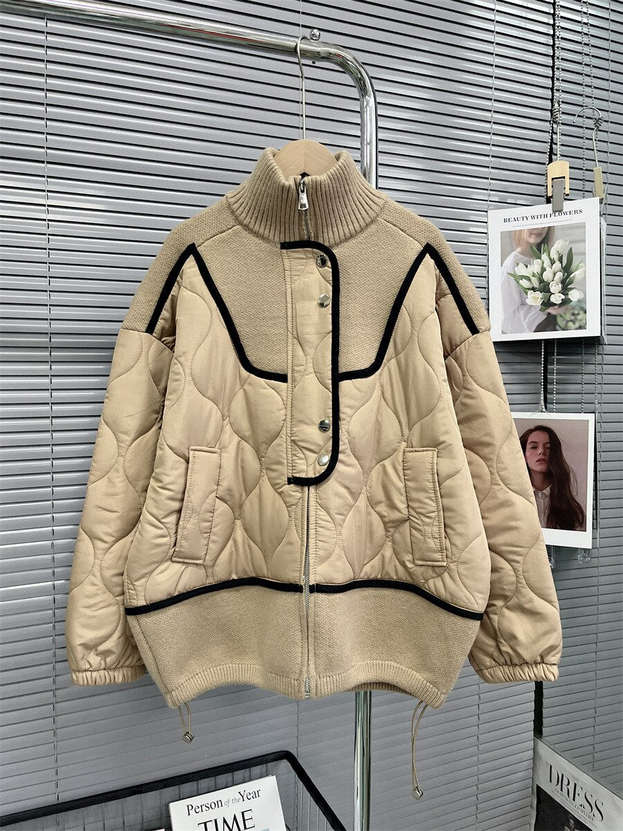 GetSpring Women Sweater Stand Collar Zipper Patchwork Cardigan Long Sleeve Warm Knit Sweater Fashion All Match Knitted Tops