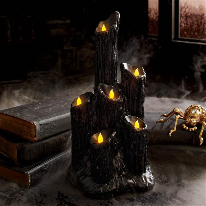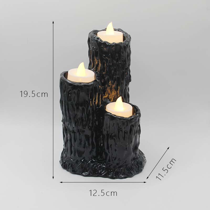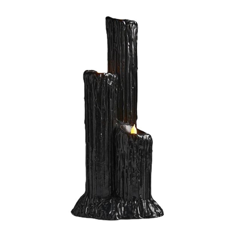 Halloween Candlestick Melting Candle Cluster Melting Black Lava Candle Holder with 3 Candle Light Resin Halloween Party Decor