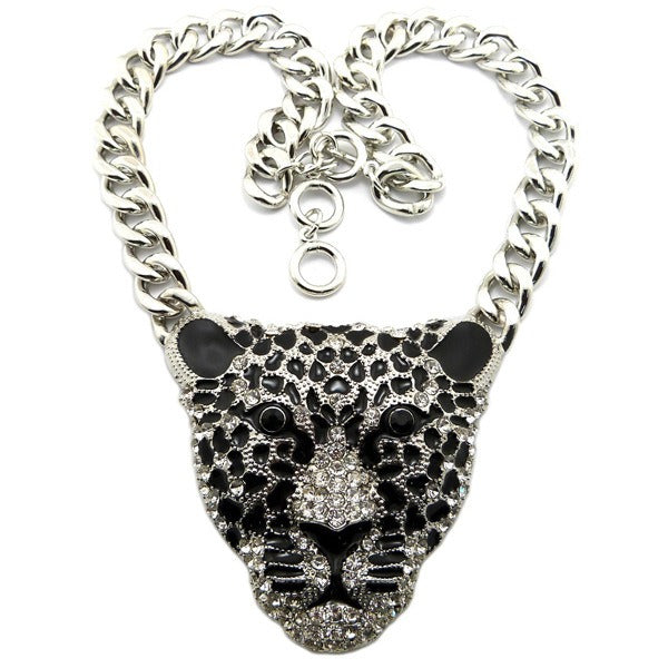 Halloween Leopard Head Iced Out Pendant Necklace For Women Hip Hop Jewelry Mens Cuban Link Chain Gothi Trend Jewelry Gift
