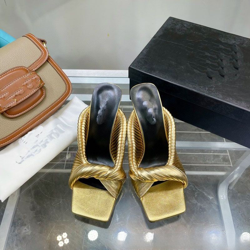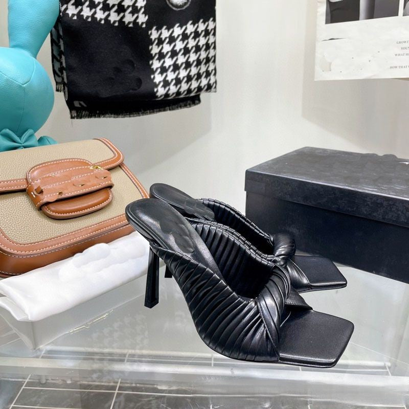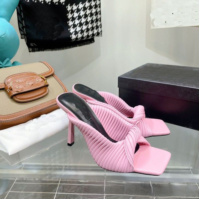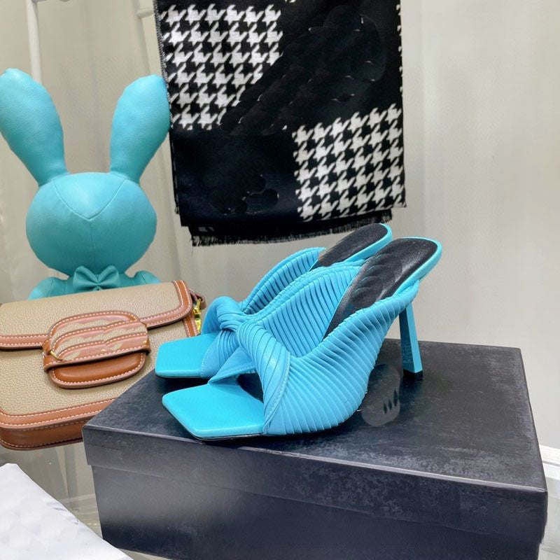 High heeled slippers fashion slim heeled multi-color pleated sandals square toe open toe women's shoes