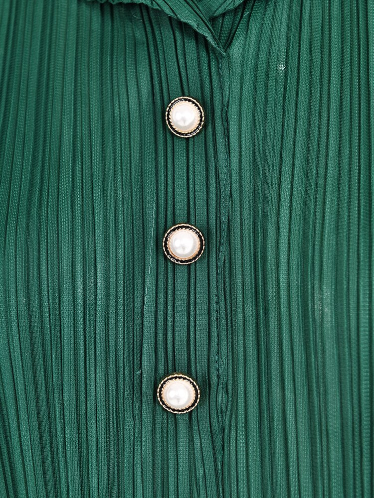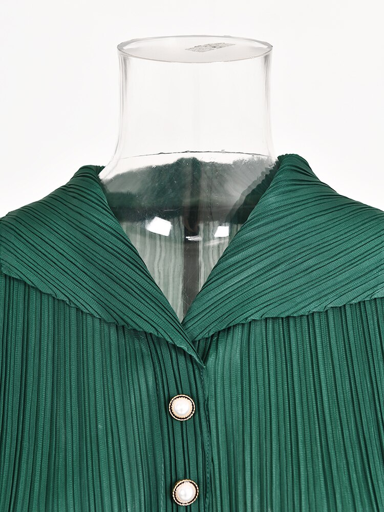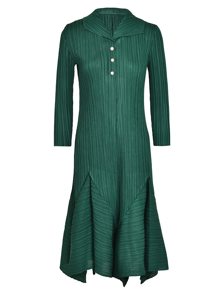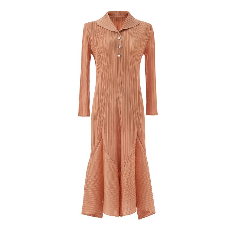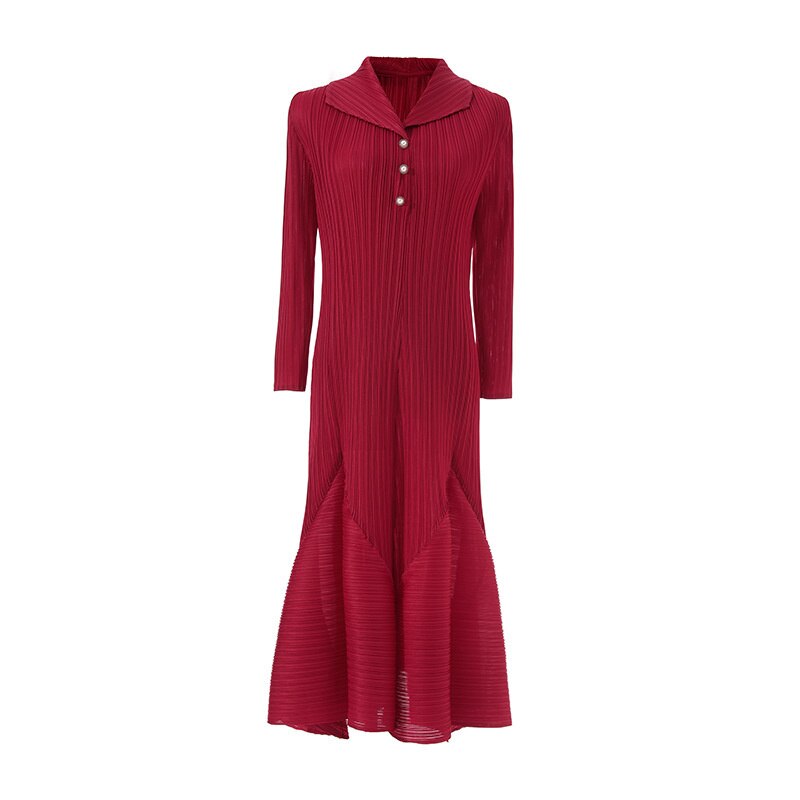 LANMREM Casual Pleated Dress For Women Lapel Long Sleeves Beading A-line Dresses High End Female Clothing New YAa541