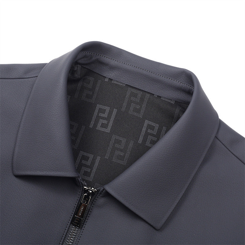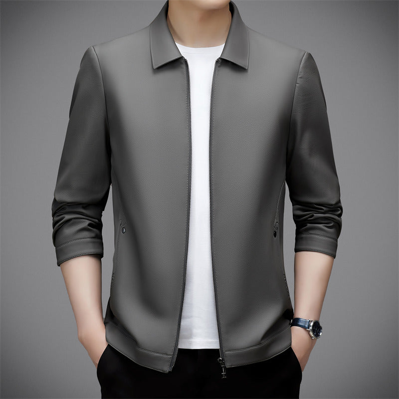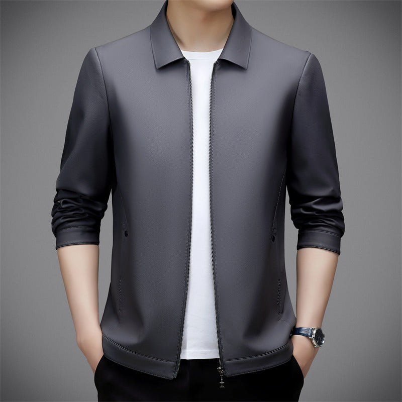 Lapel Solid Color Basic Versatile PU Leather Coat