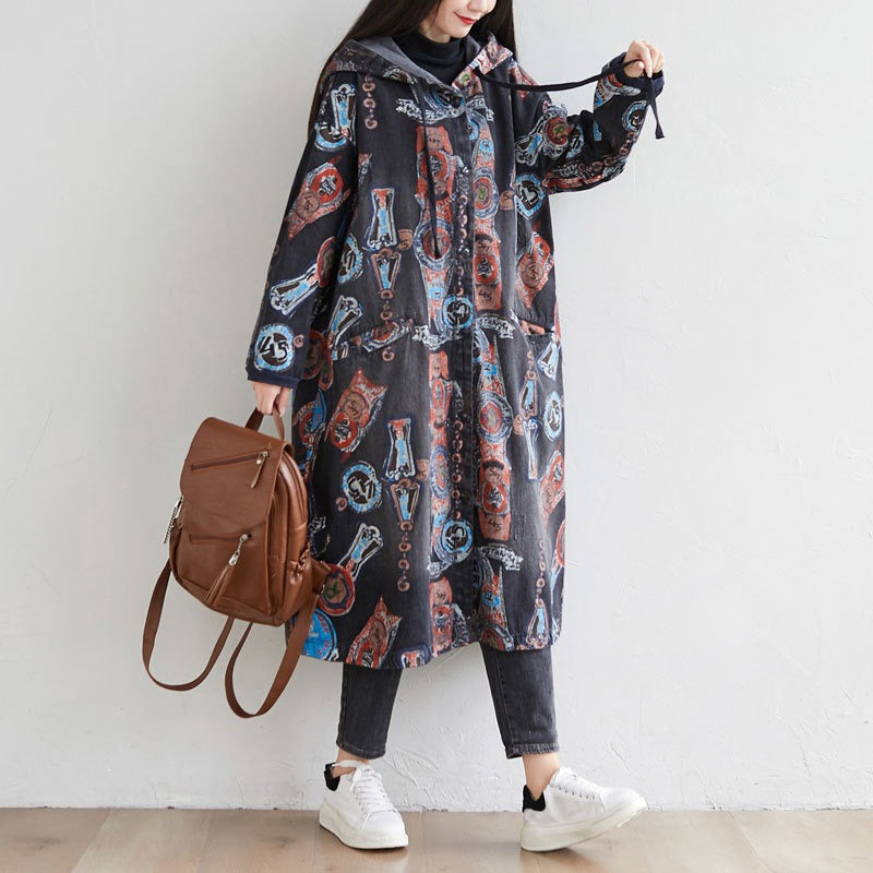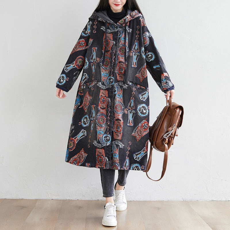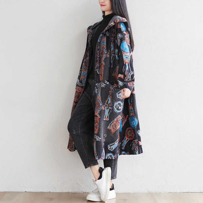 Large size slim hooded windbreaker A line skirt personalized washed distressed denim jacket cardigan