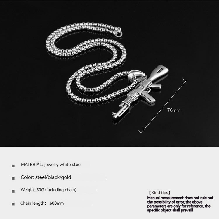 Men's AK47 Titanium Steel Street Hip-hop Domineering Stainless Steel Gun Necklace