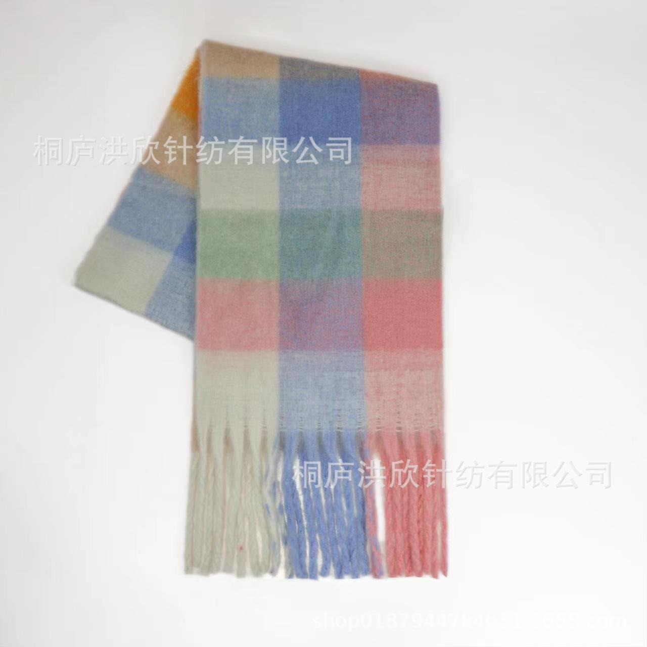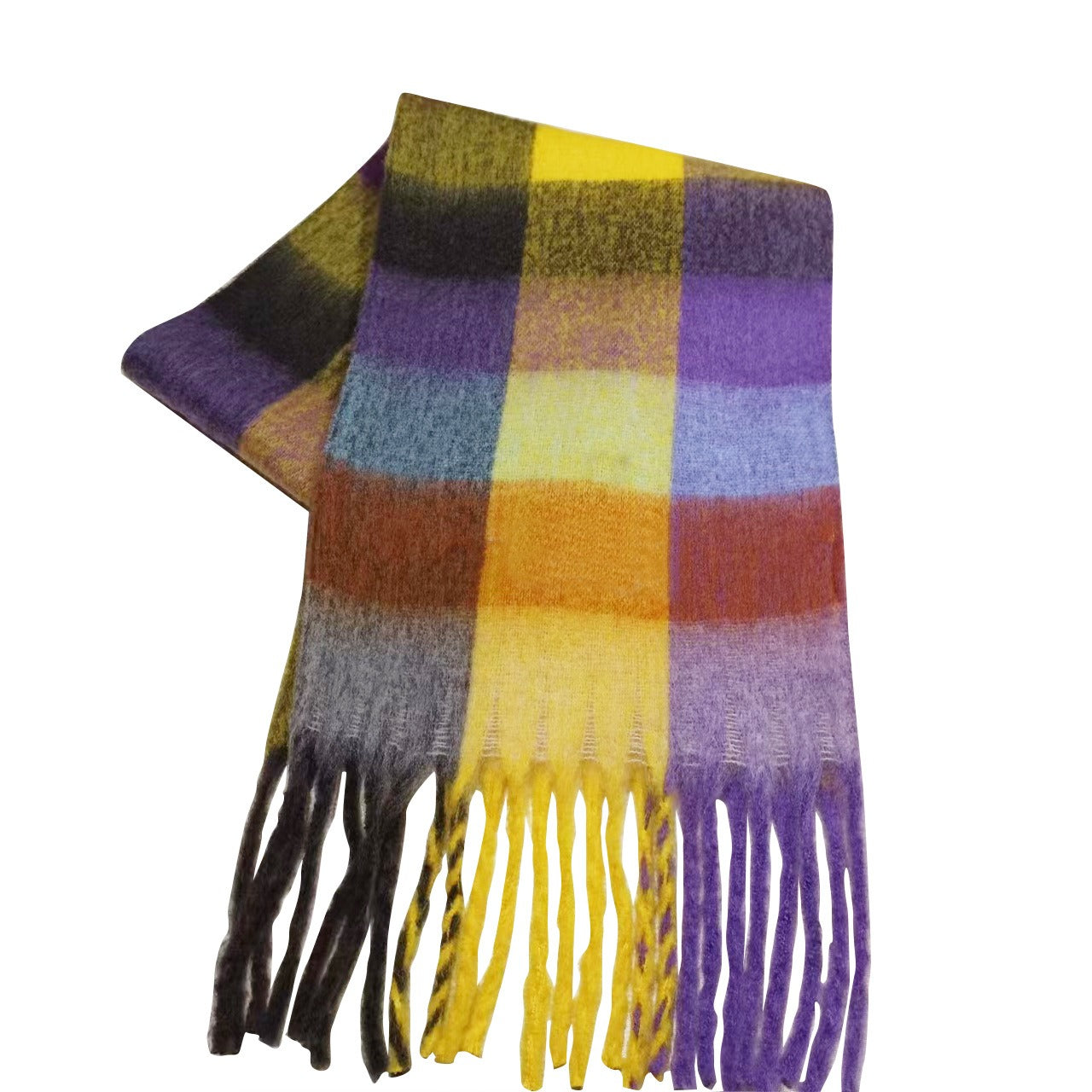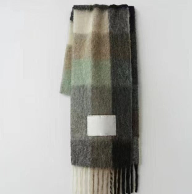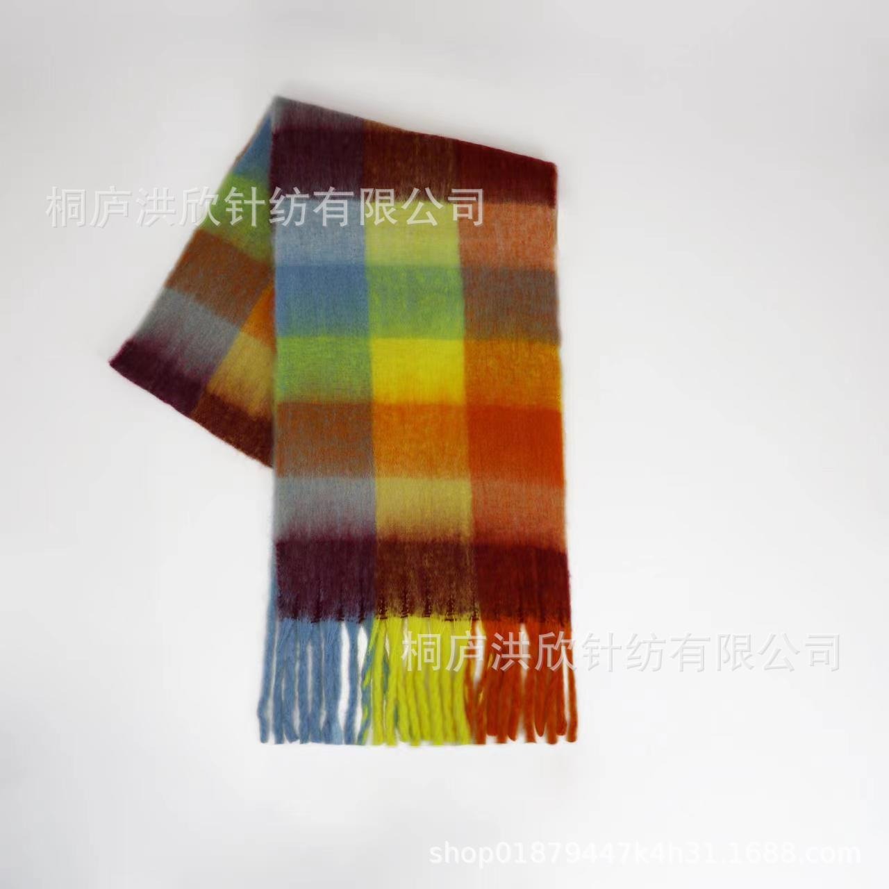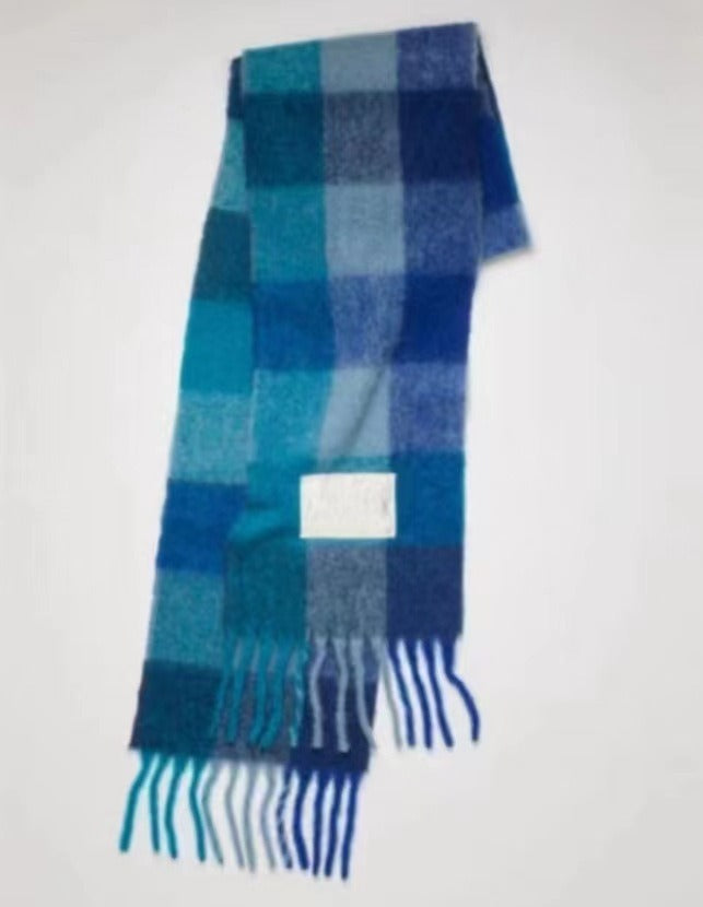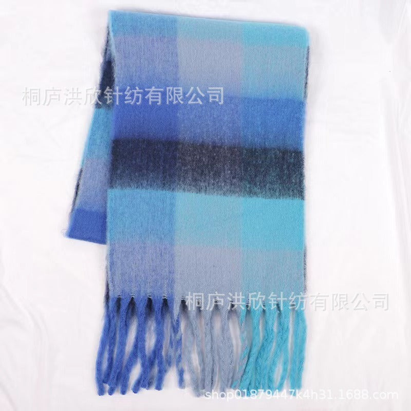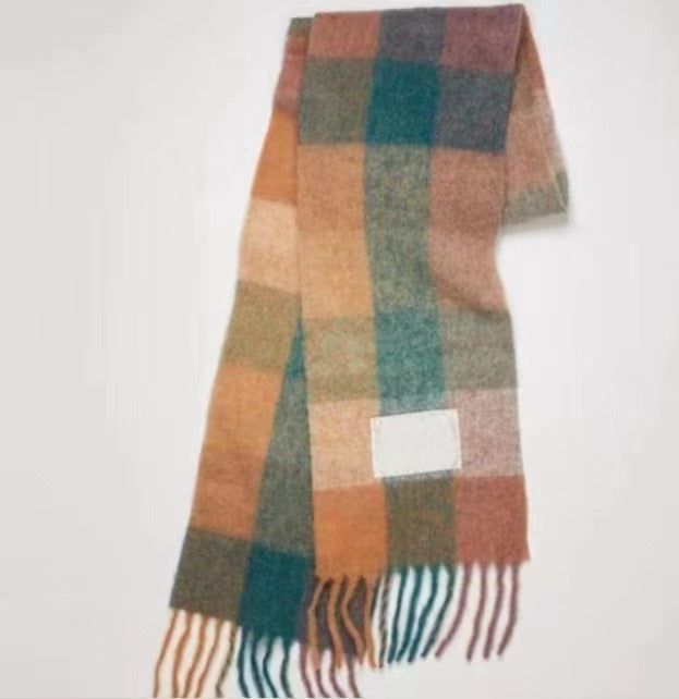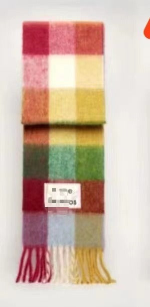 Men's and Women's Autumn and Winter Fashion Warm Rainbow Plaid Shawl Versatile Tassel Scarf