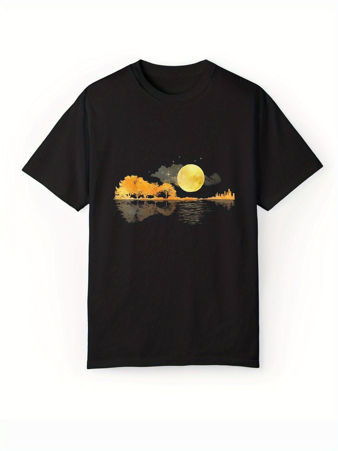 Moon Pattern T-shirt, Men's Casual Street Style Elastic Round Neck T-shirt For Summer