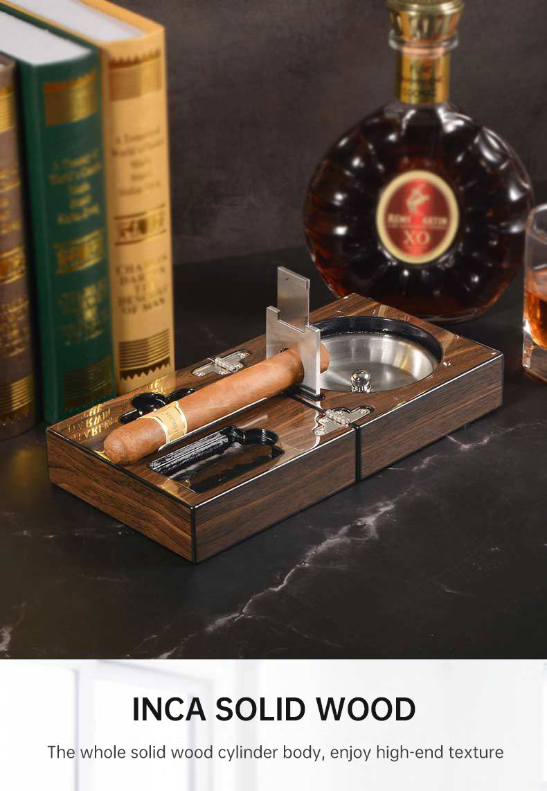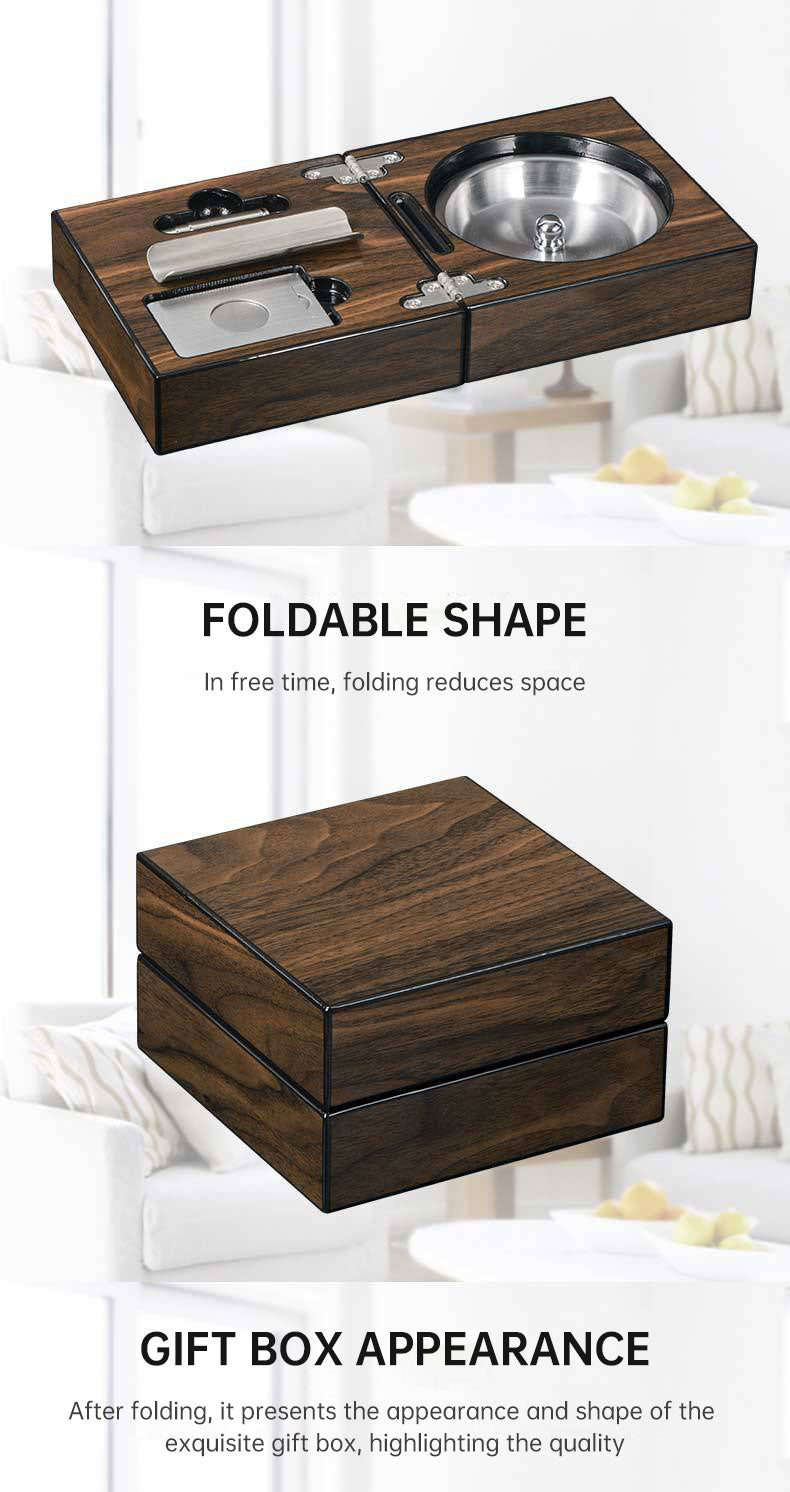 Multifunctional Cigar Ashtray Foldable Walnut Wood Box Include Cigar Cutter Holder And Hole Opener Smoking Accessories