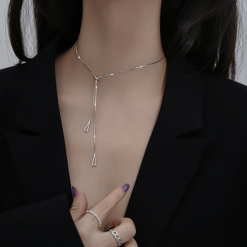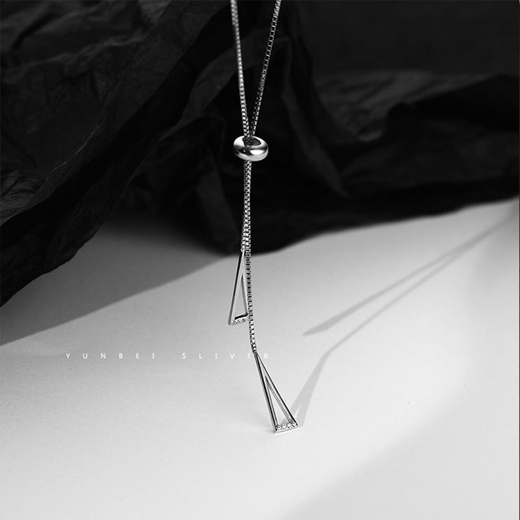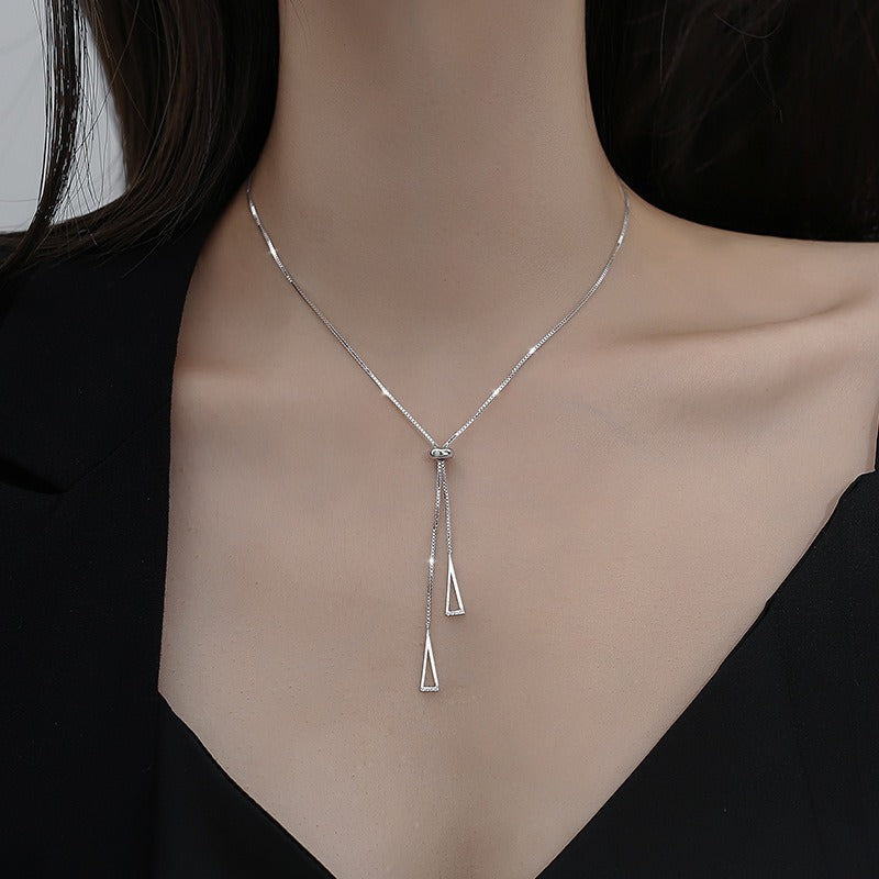 New 925 Sterling Silver Geometric Triangle Necklace for Women Adjustable Clavicle Chain sweater chain Rope chain Jewelry Gifts