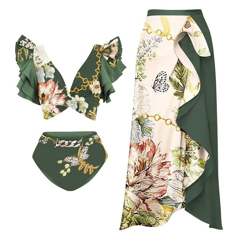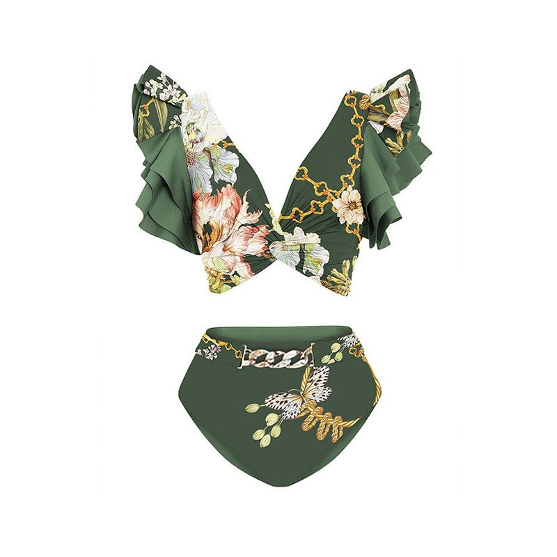 New European and American Printed One-Piece Swimsuit Female Butterfly Strap Resort Beach Bikini