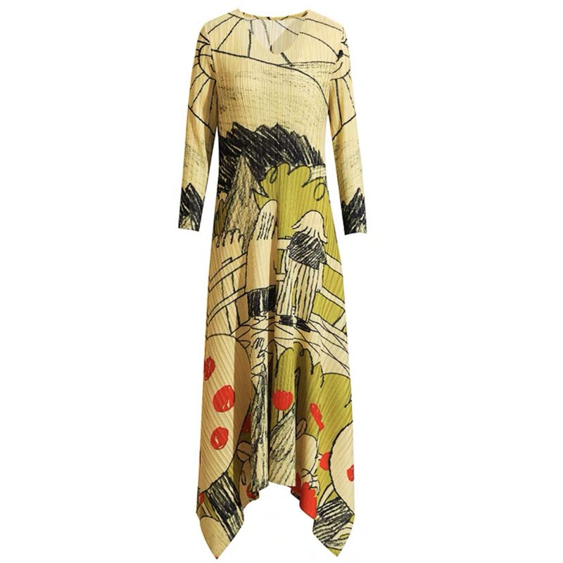 OFF designer aesthetic vintage pring long sleeve maxi dresses women's clothing loose oversized Pleated dress elegant party robe