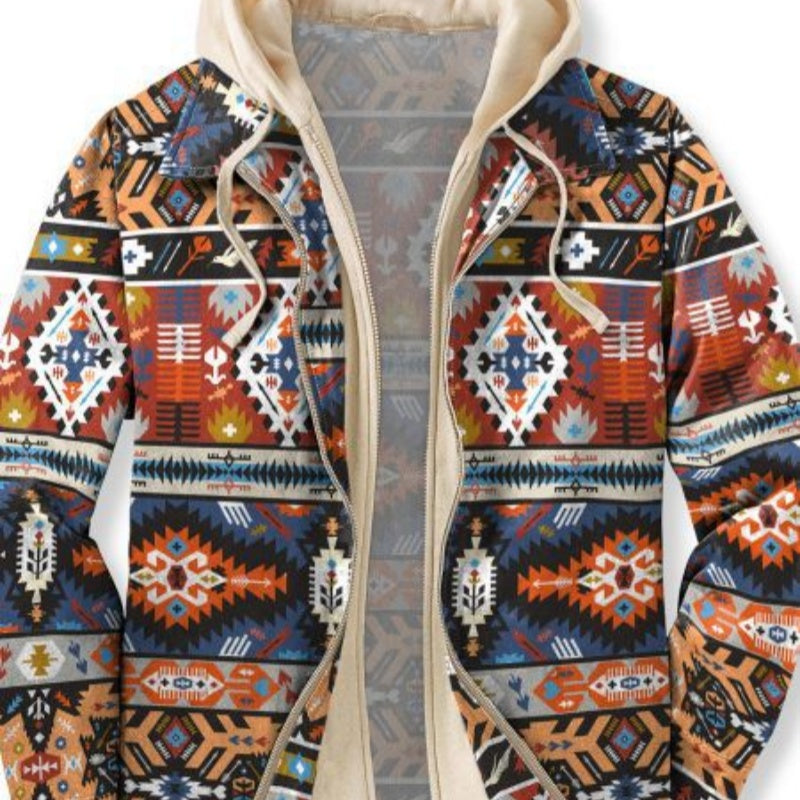 Personal Leisure Printed Men's Hooded Jacket Coat Cotton Coat