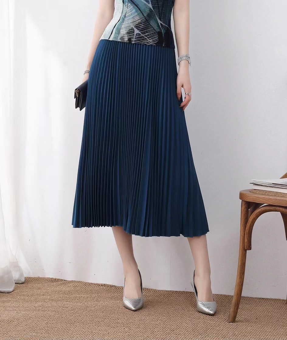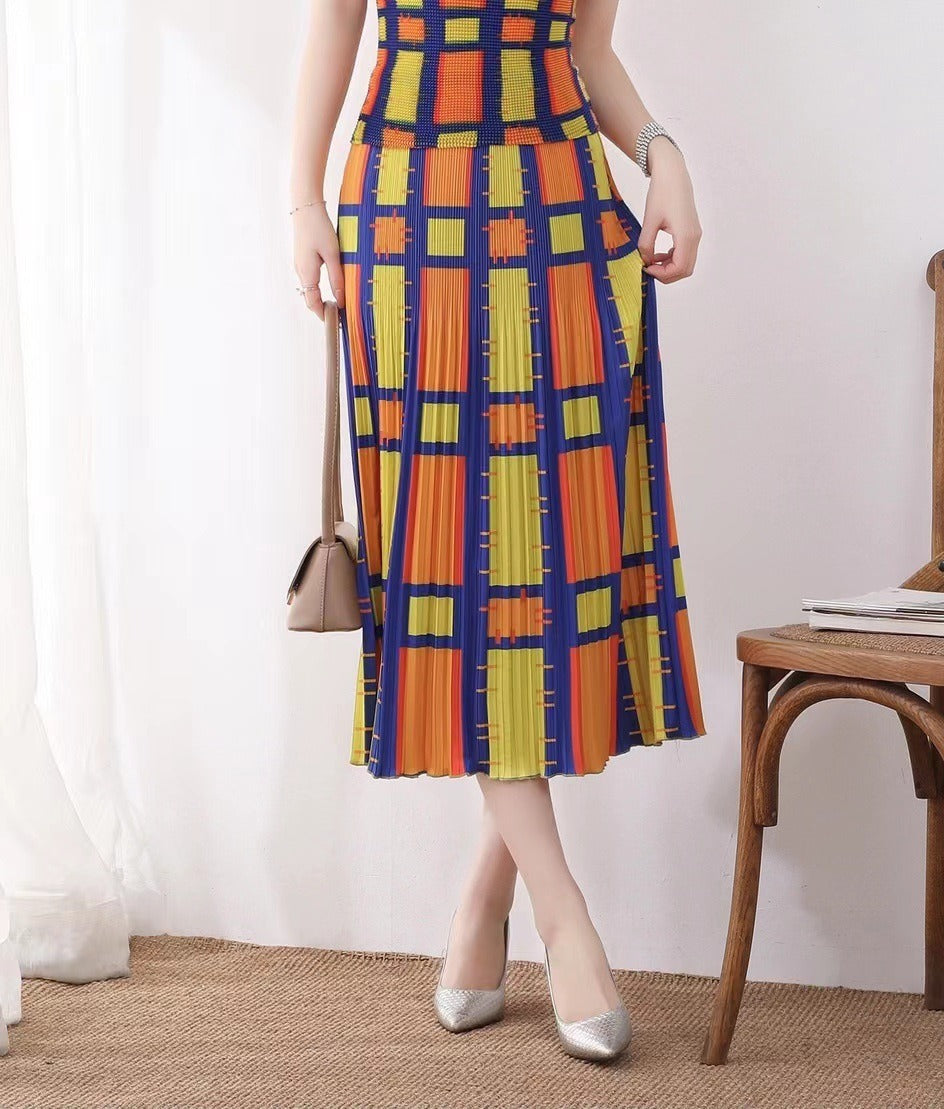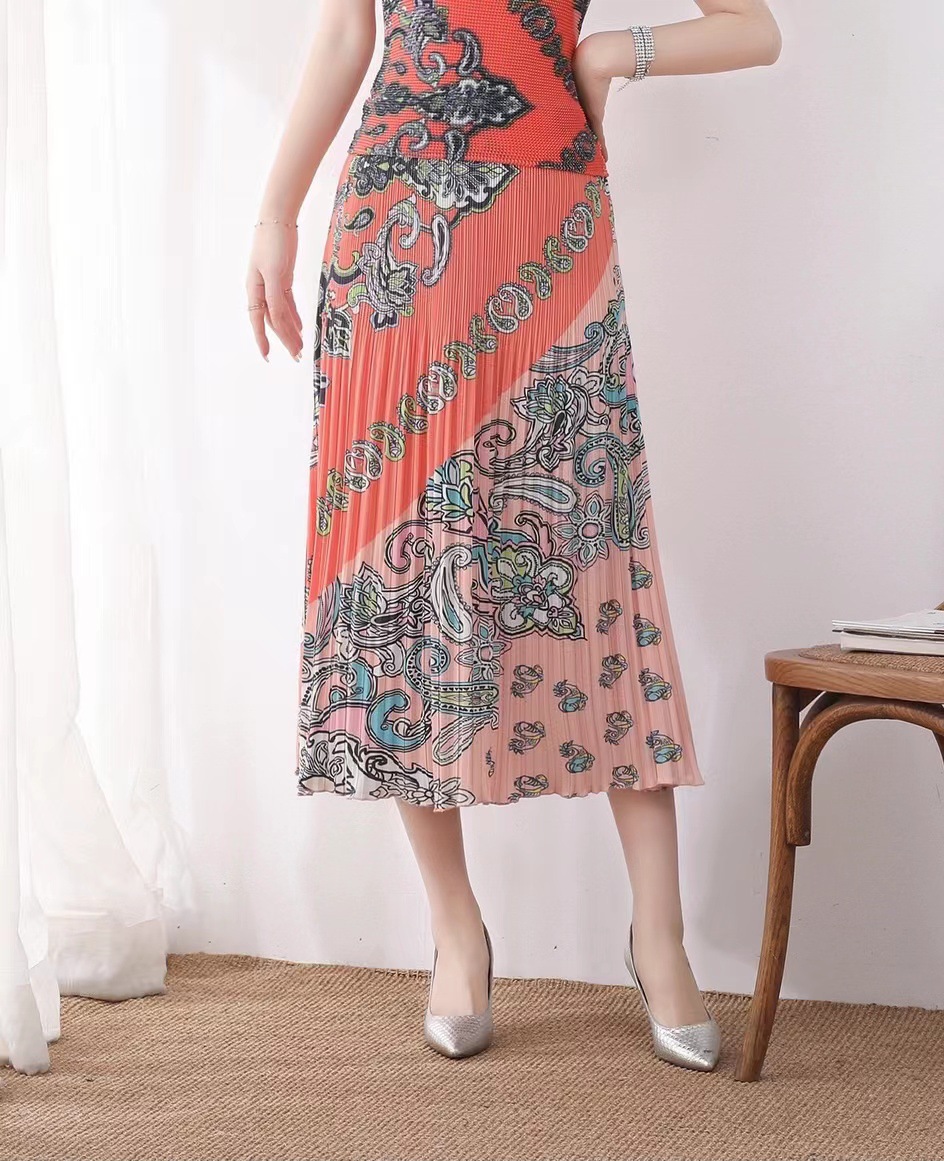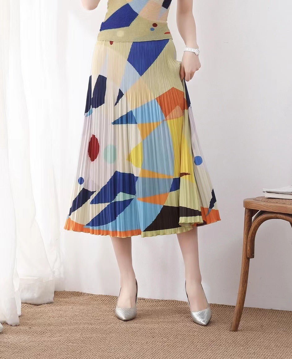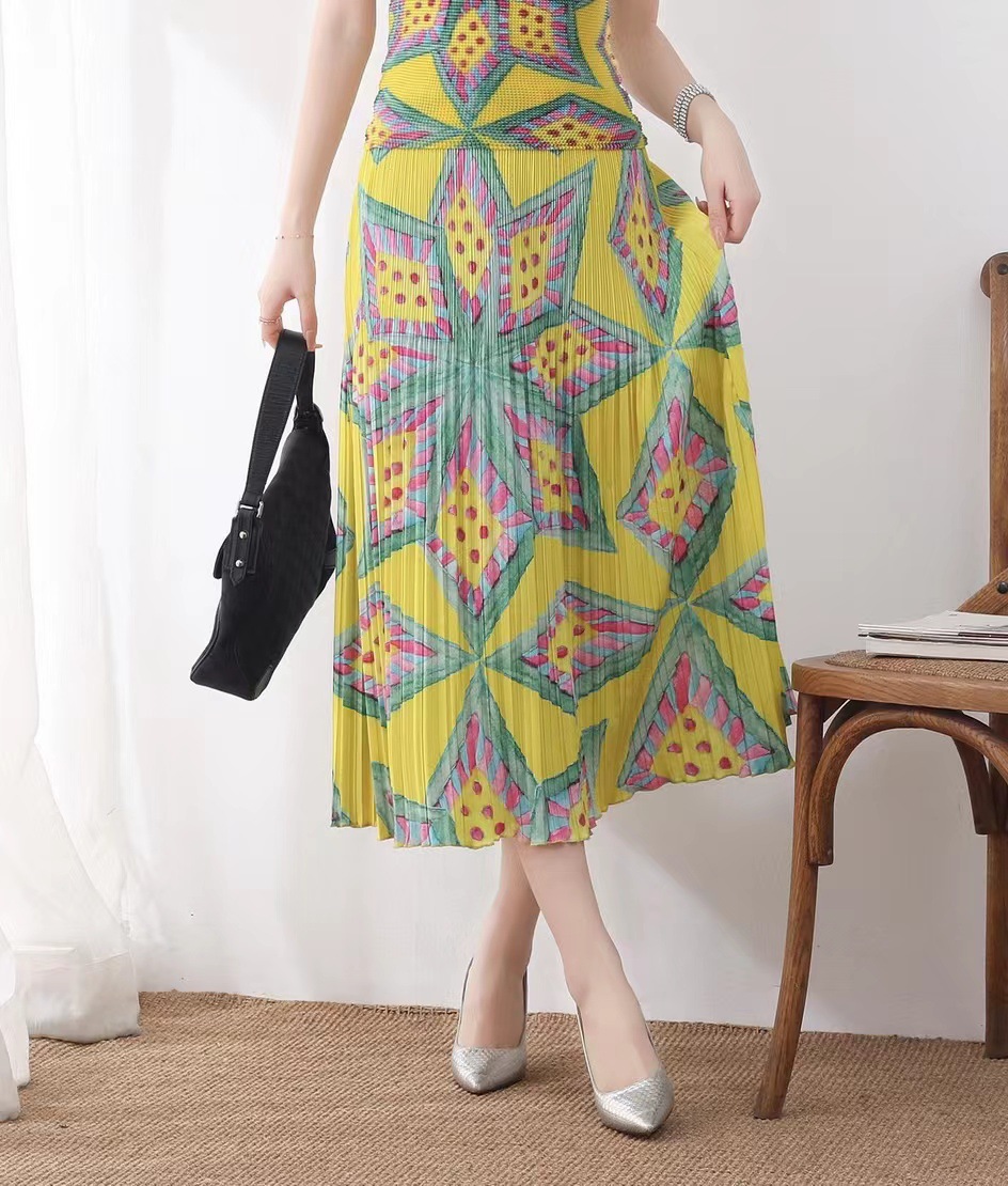 Pleated Skirt Women Printed Large Size Large Swing Mid-Length Versatile Younger Fashion Elegant Skirt