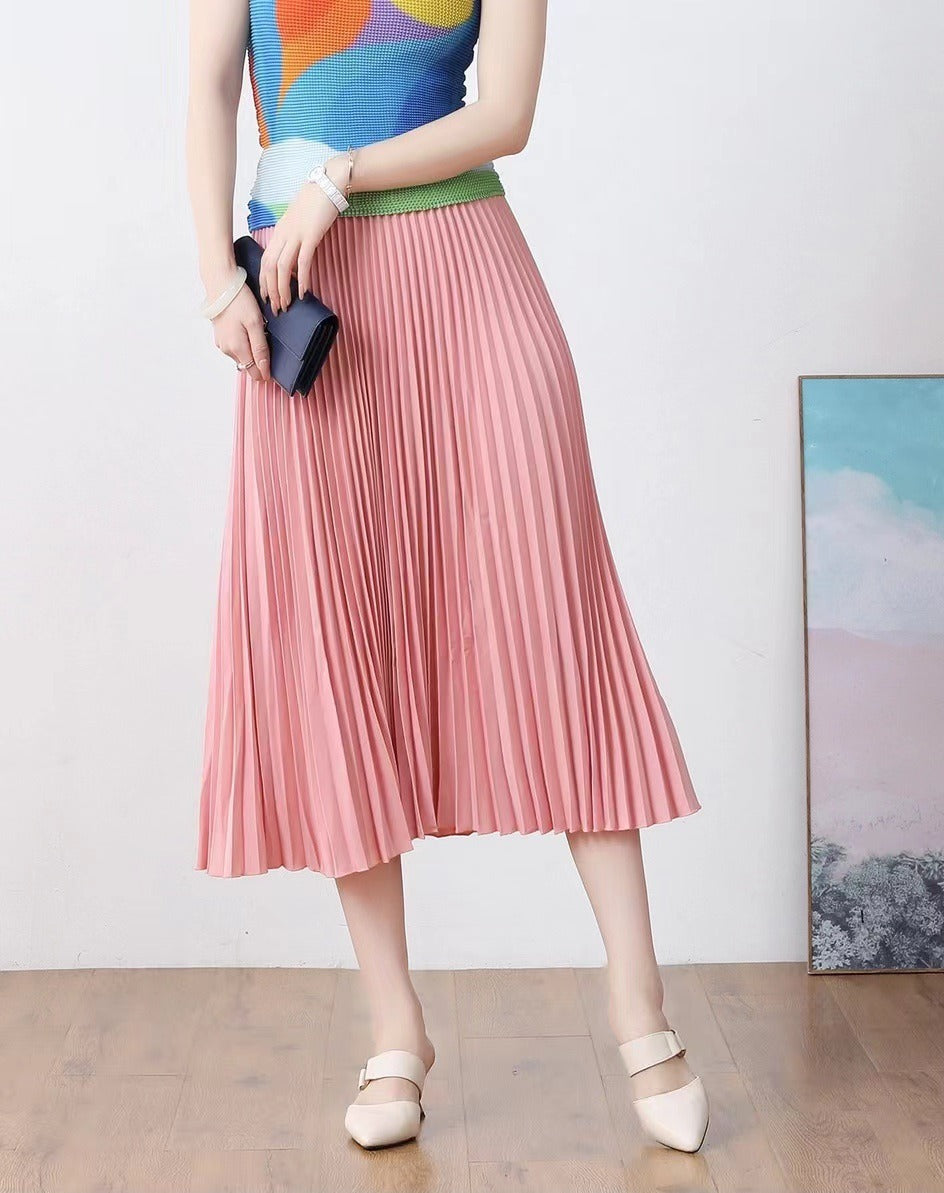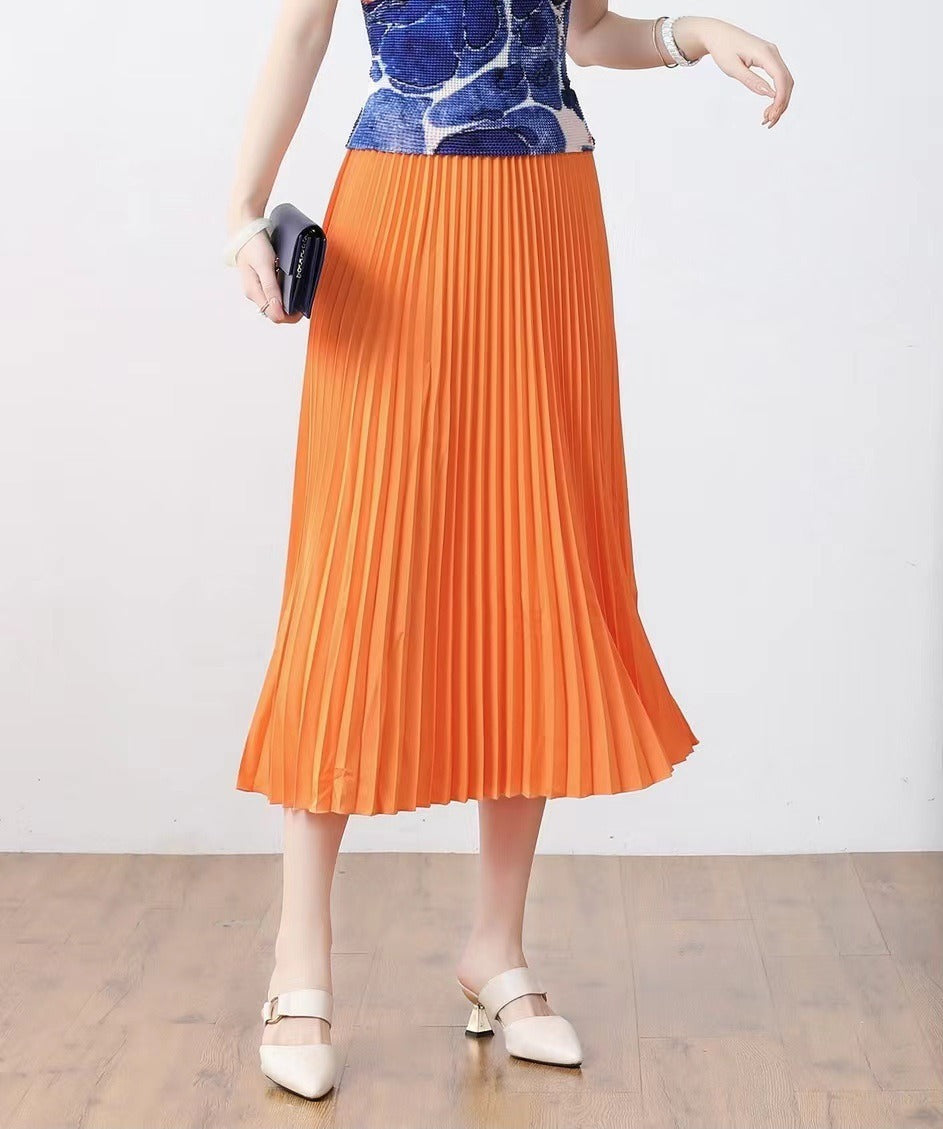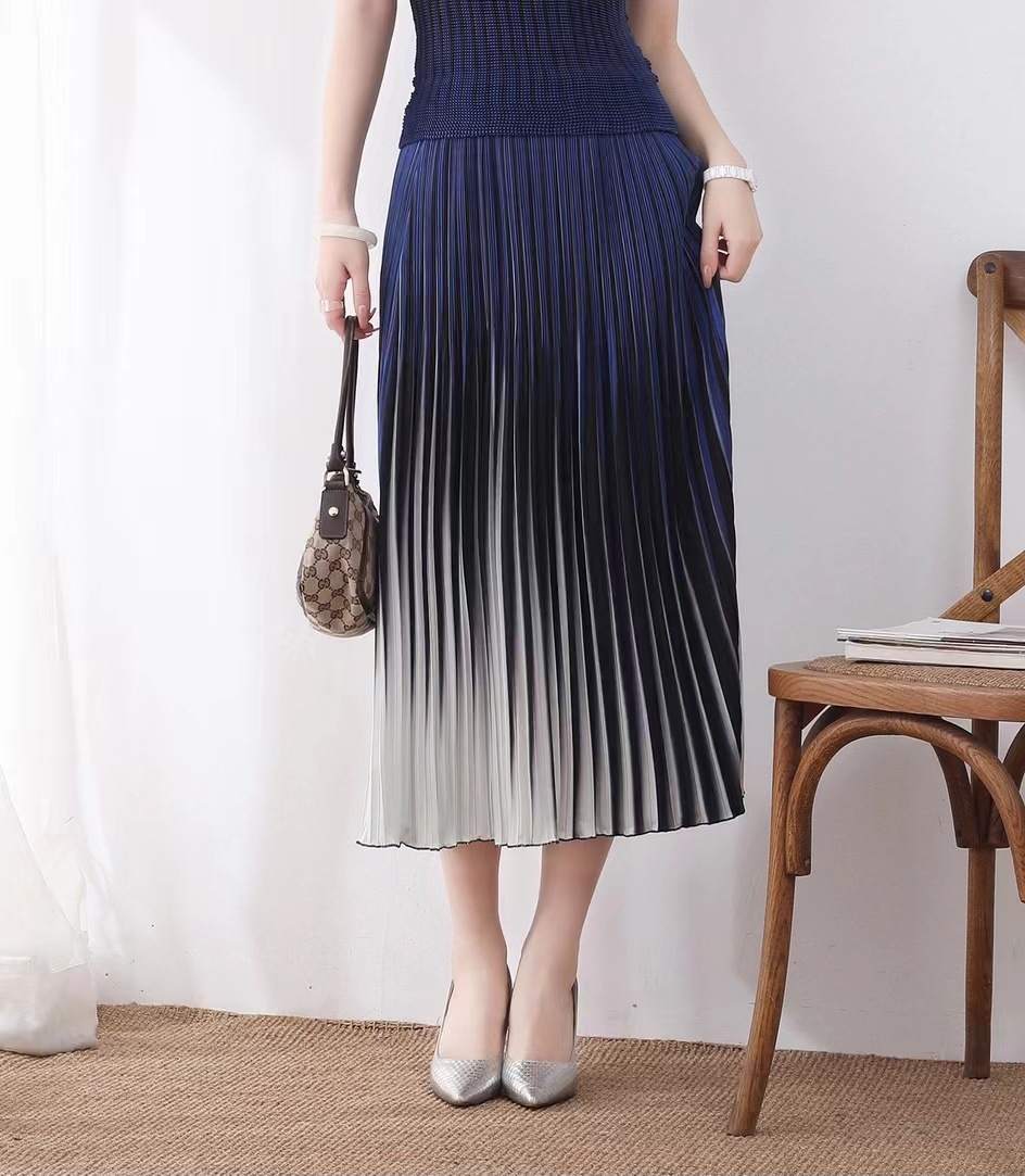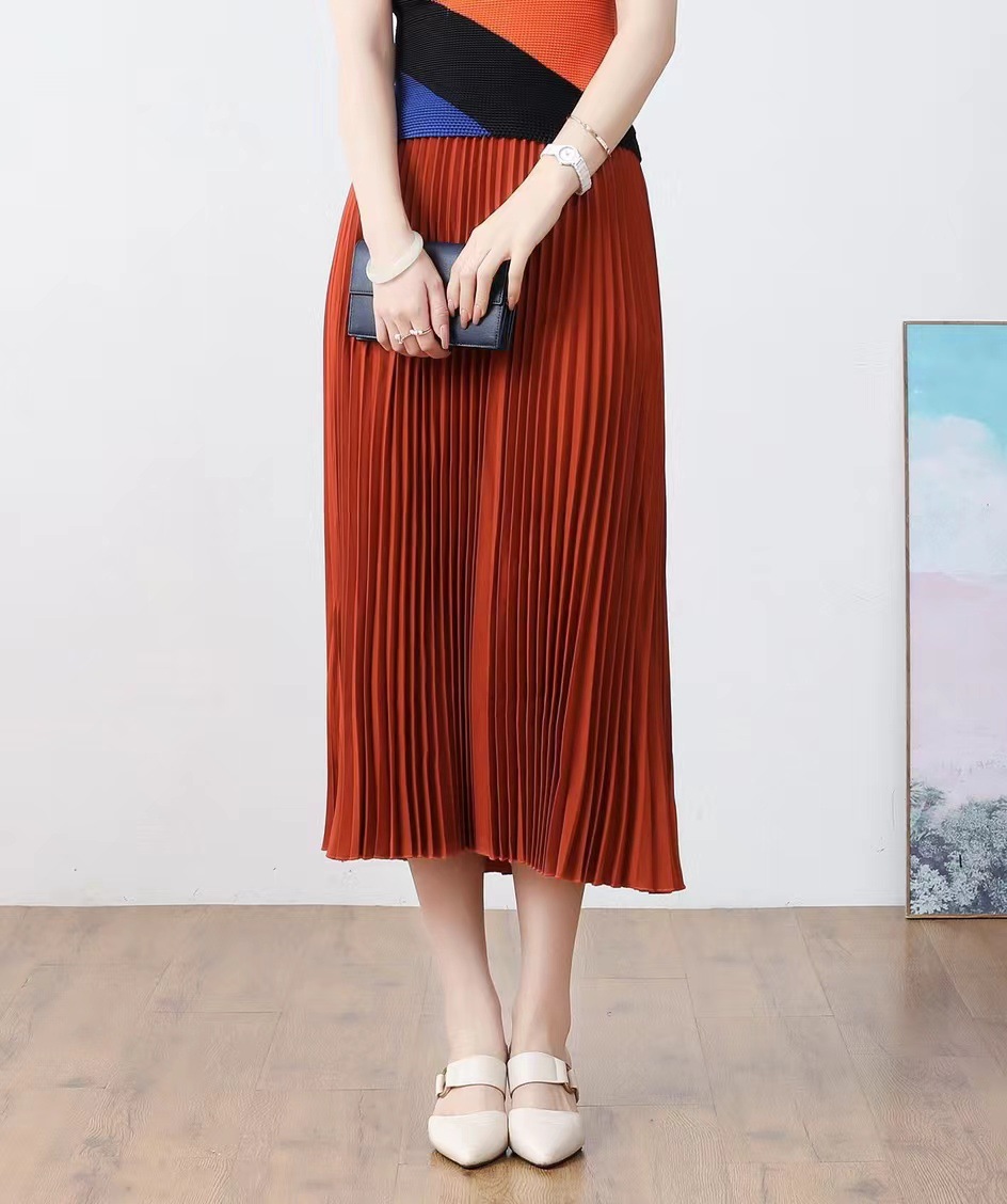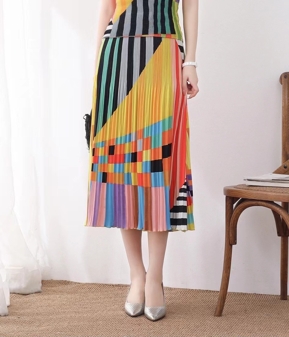 Pleated Skirt Women Printed Large Size Large Swing Mid-Length Versatile Younger Fashion Elegant Skirt