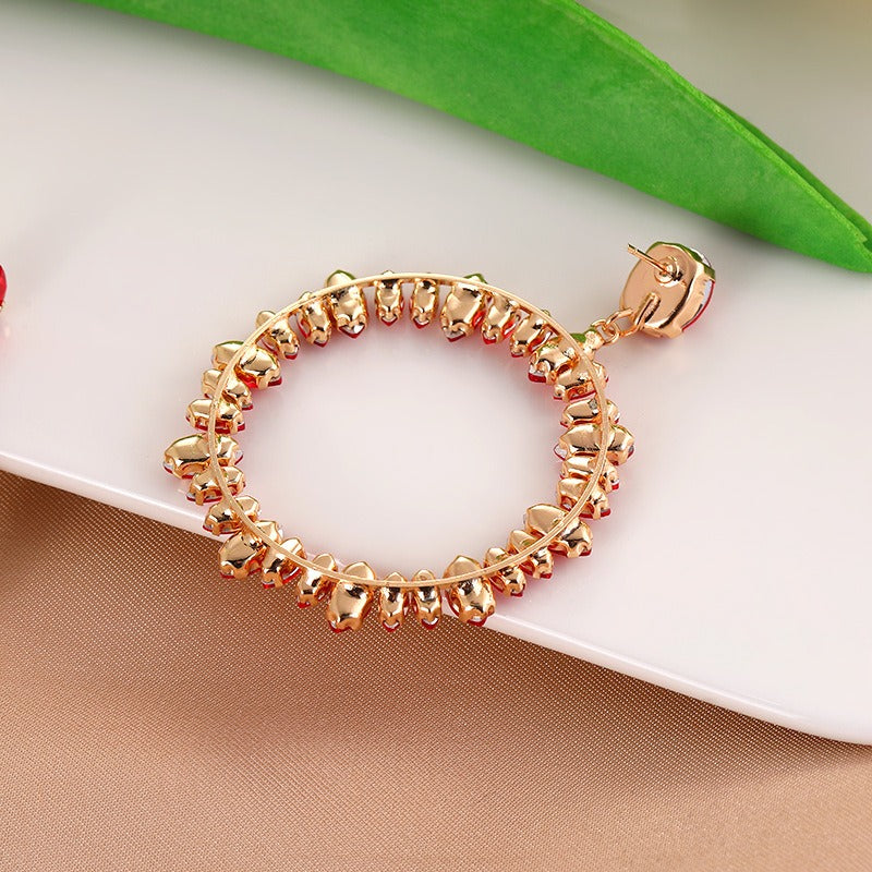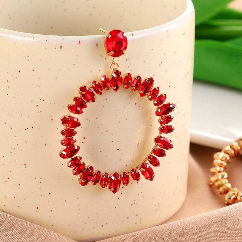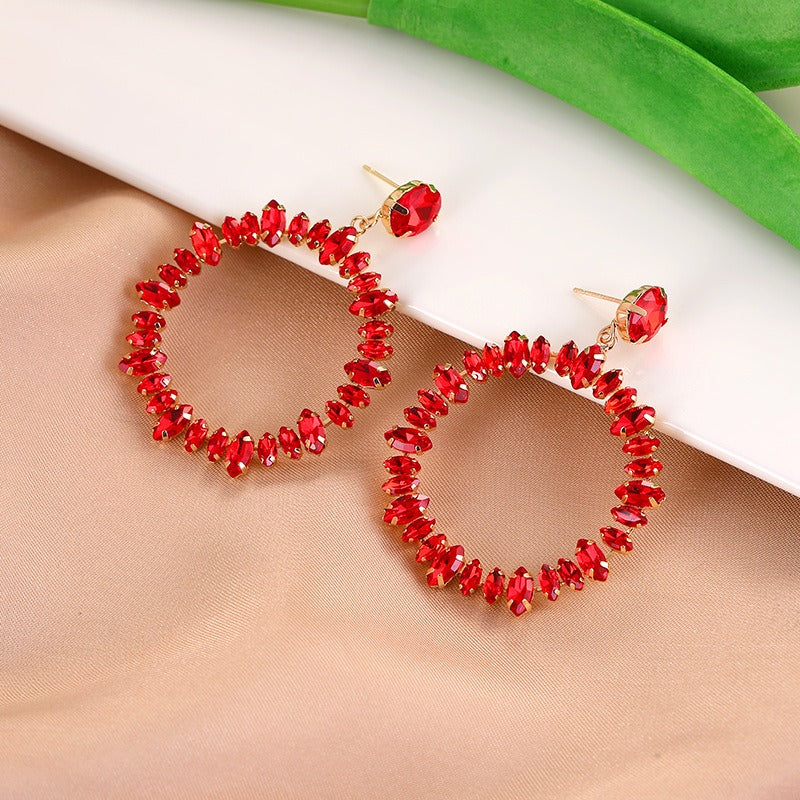 Red glass diamond studded earrings, elegant and exquisite women's earrings