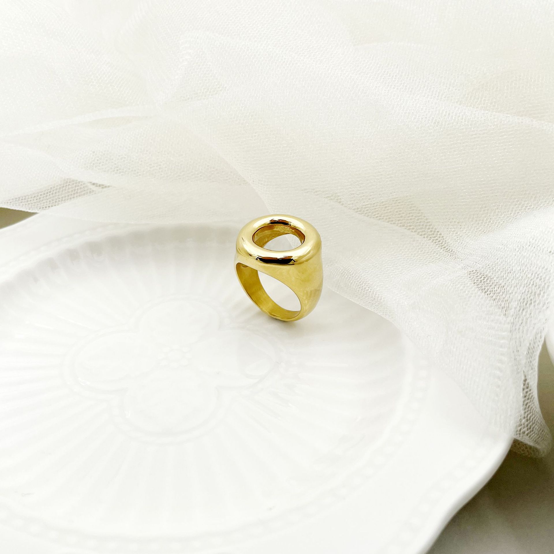 Retro, simple, fashionable, personalized, light and luxurious circular ring design, stainless steel gold-plated versatile ring