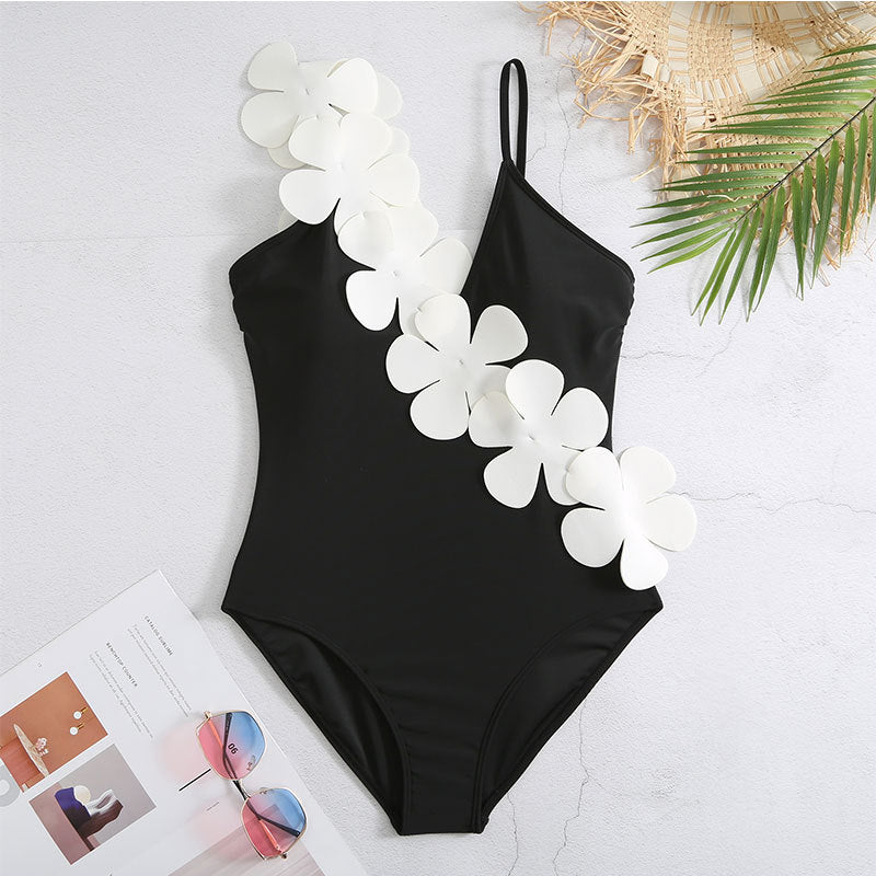 Sexy 1 Piece Swimsuit Skirt Summer Women Halter 3D Flower Print Swimwear Beach Dress Cover Up Monokini Bath Suit
