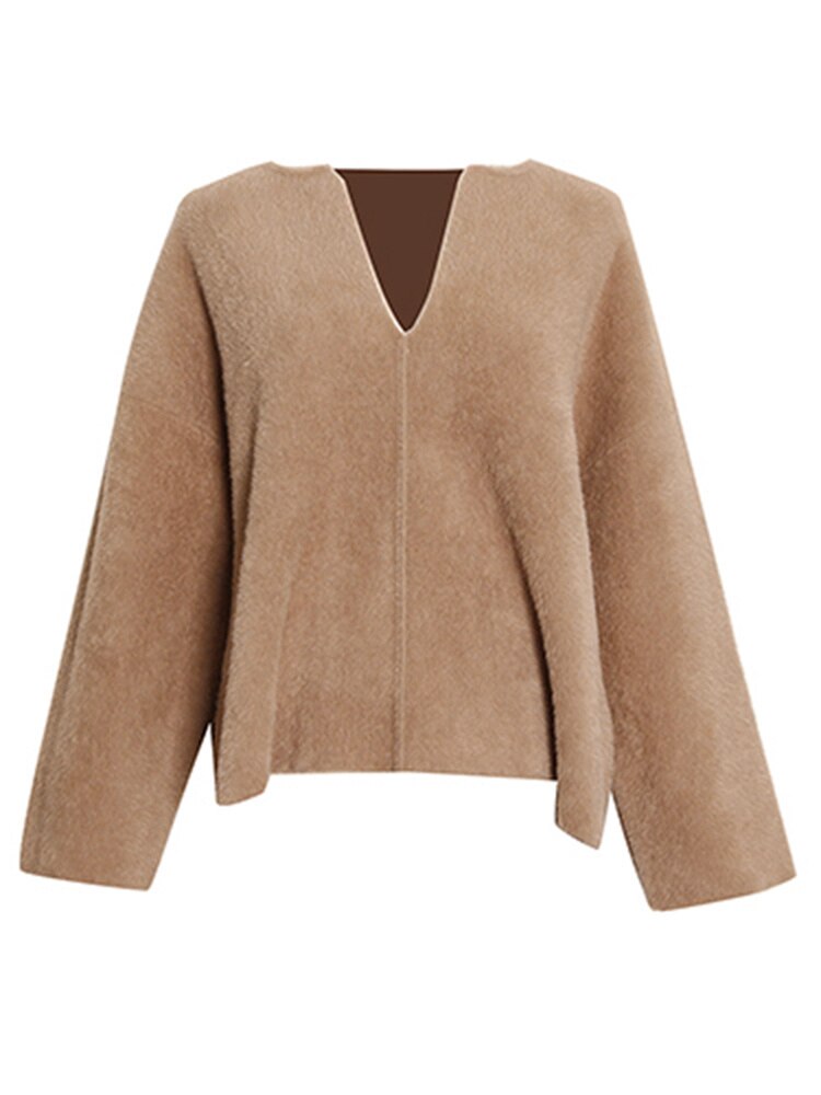 Solid Minimslist Pullover Sweater for Women V Neck Long Sleeve Straight Kintting Sweaters Female Clothing Fashion New