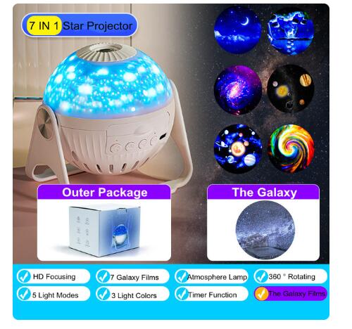 Star Planetarium 7 in 1 360 Adjustable with Planets Nebulae Moon for Kids Room Decor Night Light Ambiance Galaxy Projector