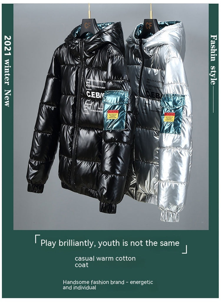 Winter Down Thick Bright Leather Cotton-padded Jacket