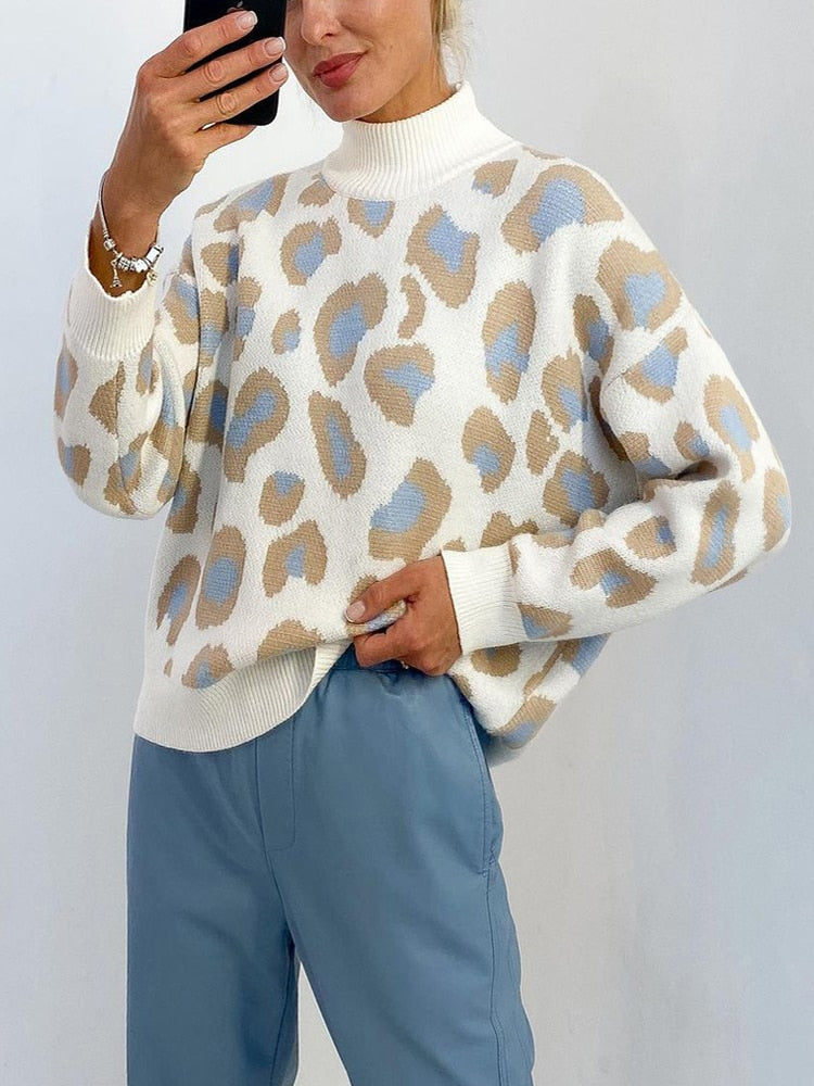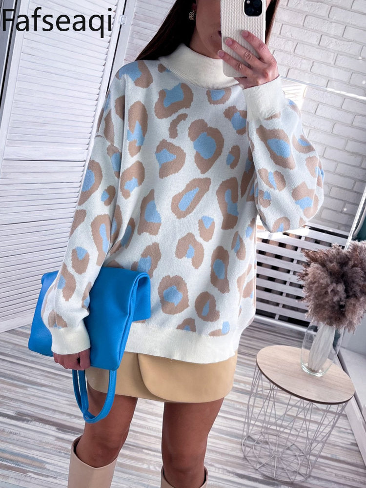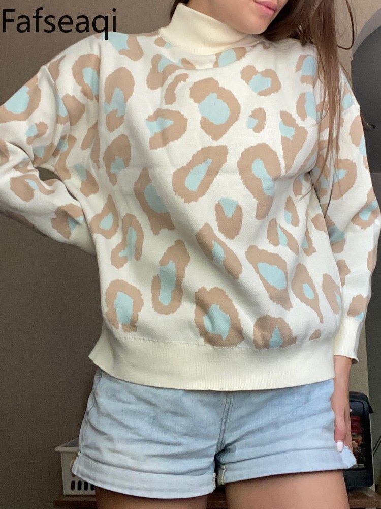 Winter Women's Sweater Leopard Print Animal Basic Thick Turtleneck Oversize Jumper Sotf Warm Knitted Sweaters for Womens