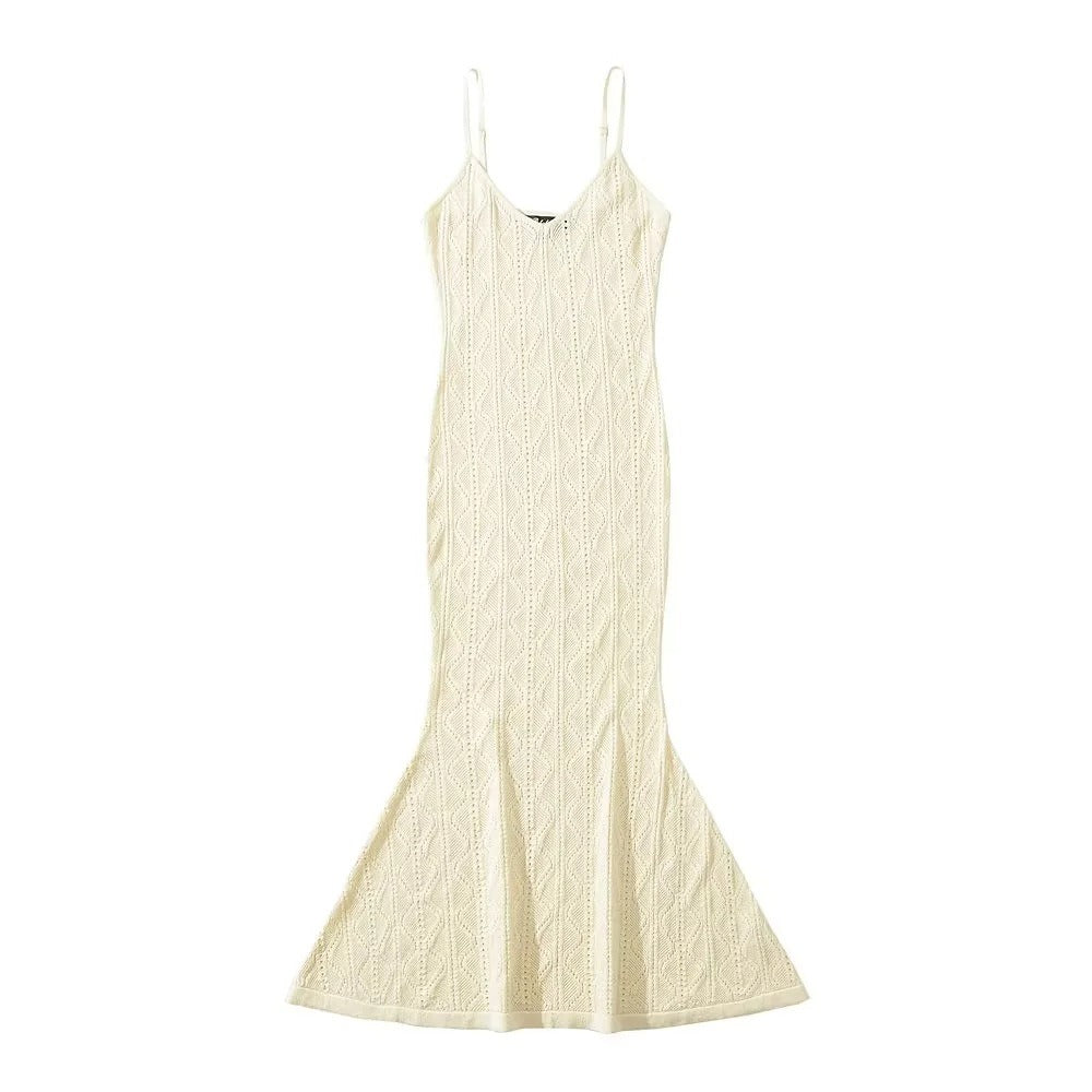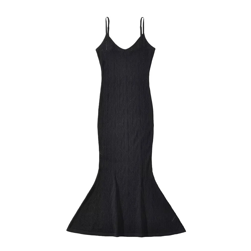 Women Fashion Dress Elegant Solid Sleeveless Dresses Slim Hollowed Out Suspender Woman Mermaid Long Dress