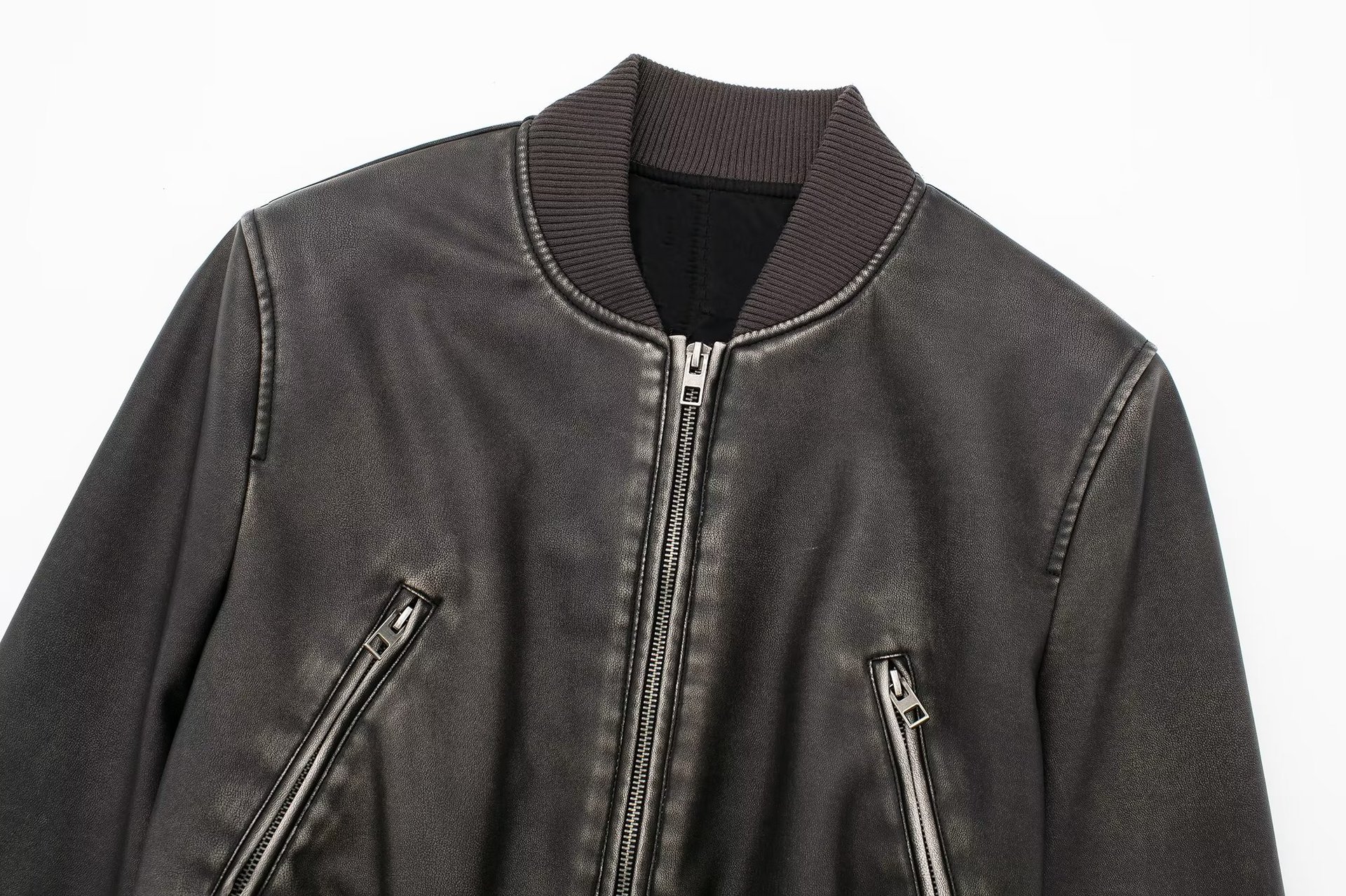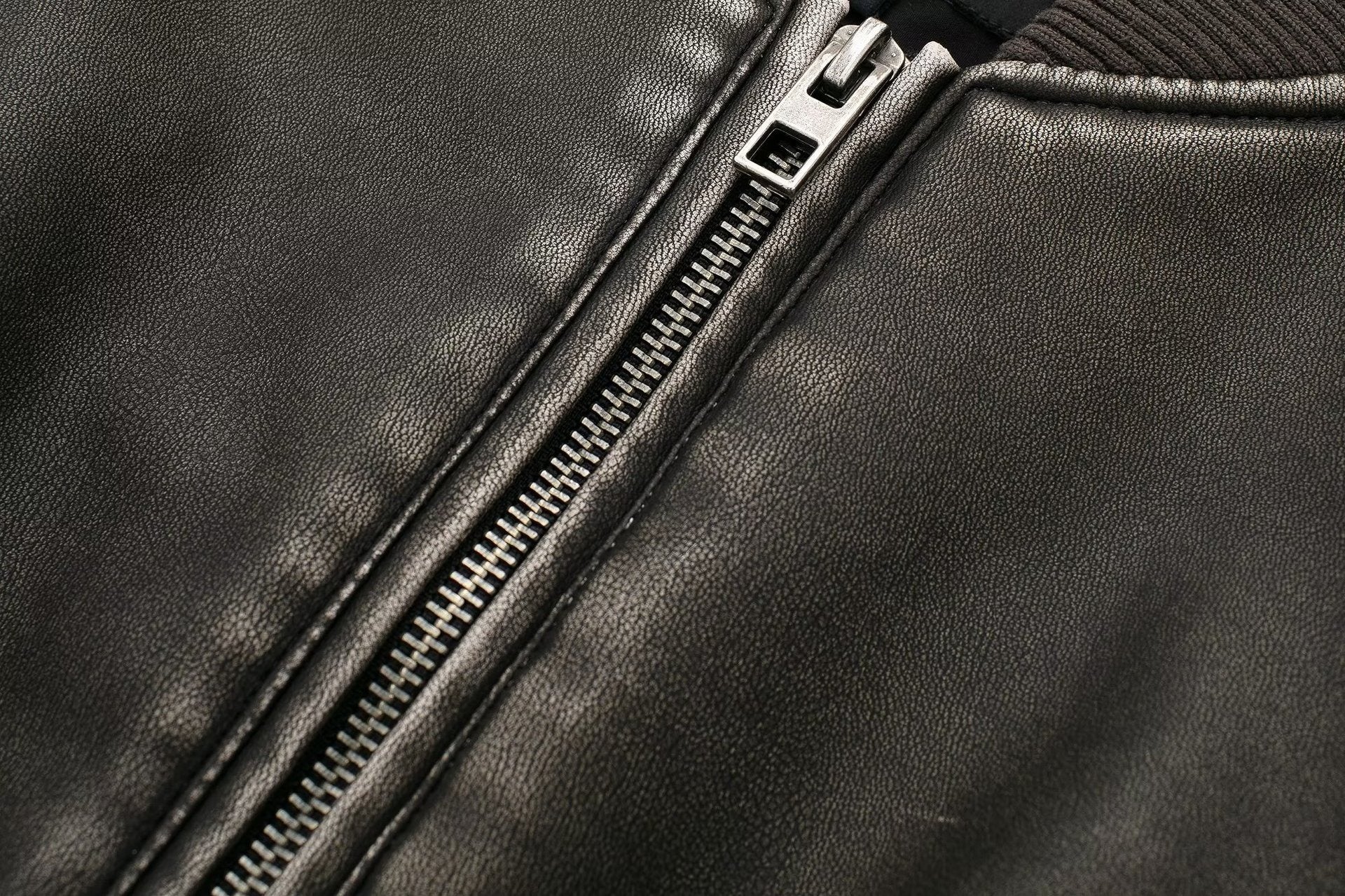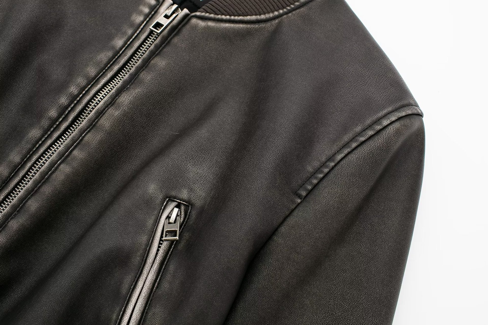 Women Fashion Long Sleeve Zipper Leather Bomber Jacket Outwear