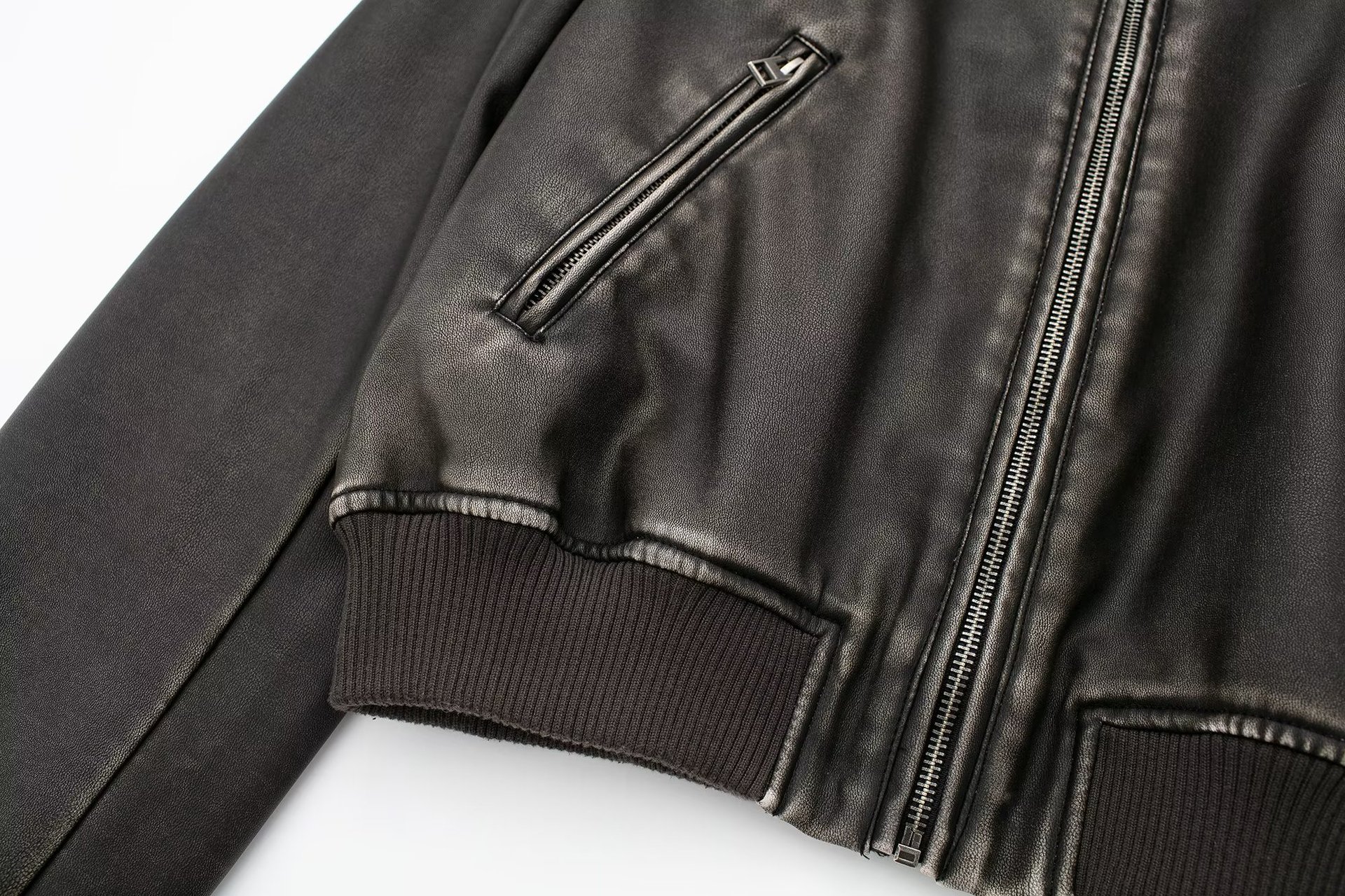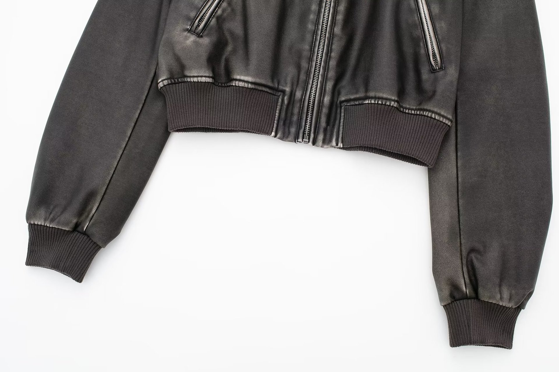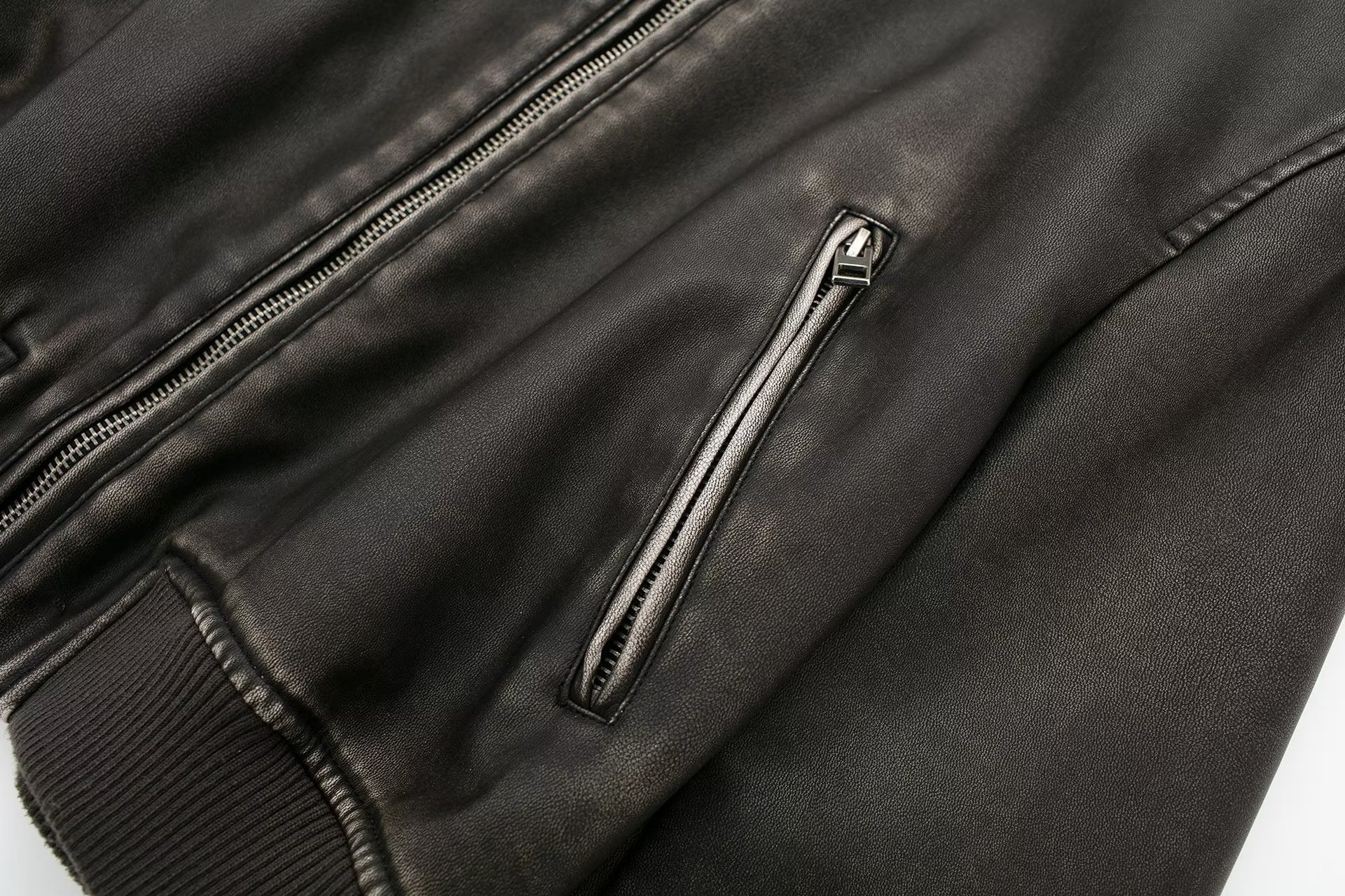 Women Fashion Long Sleeve Zipper Leather Bomber Jacket Outwear